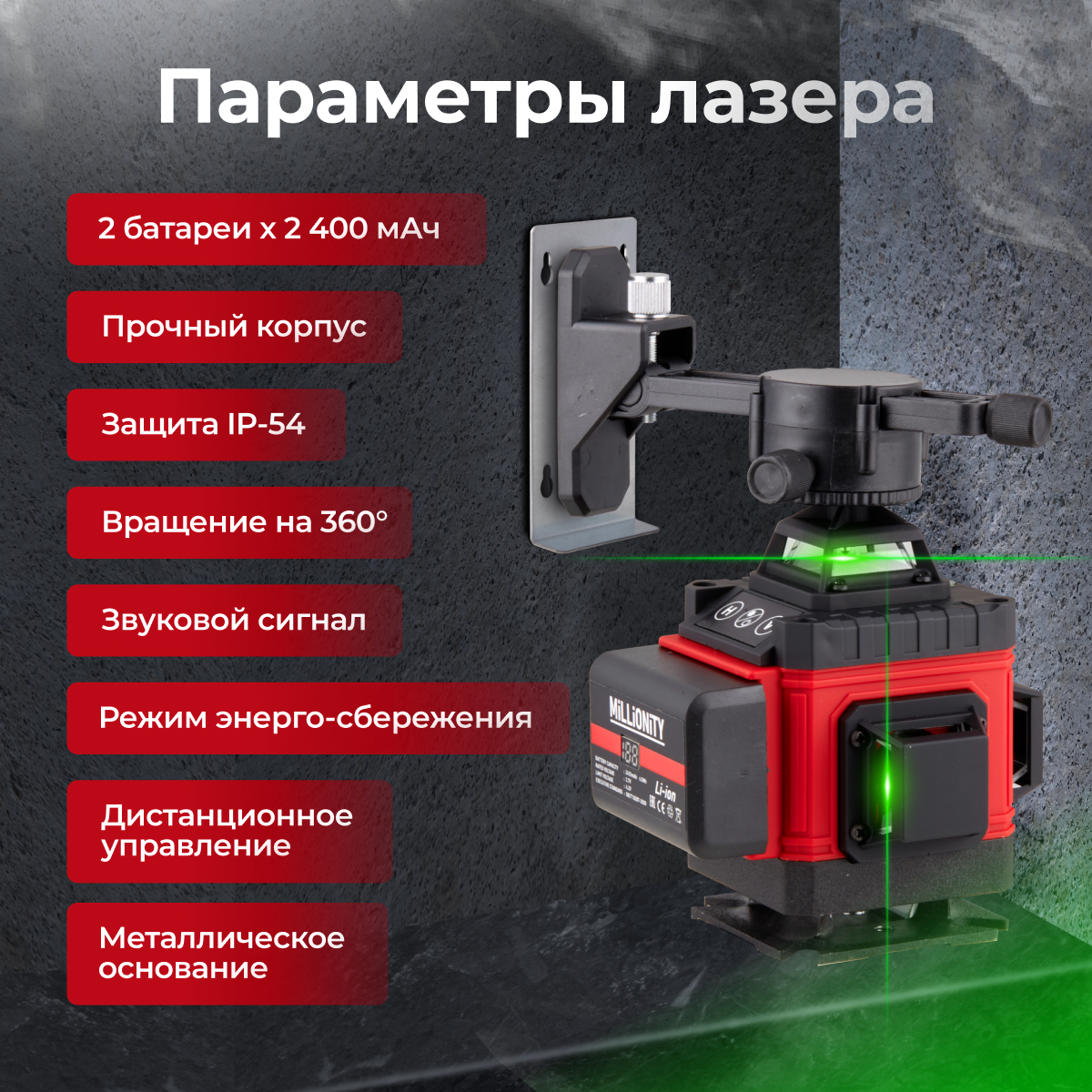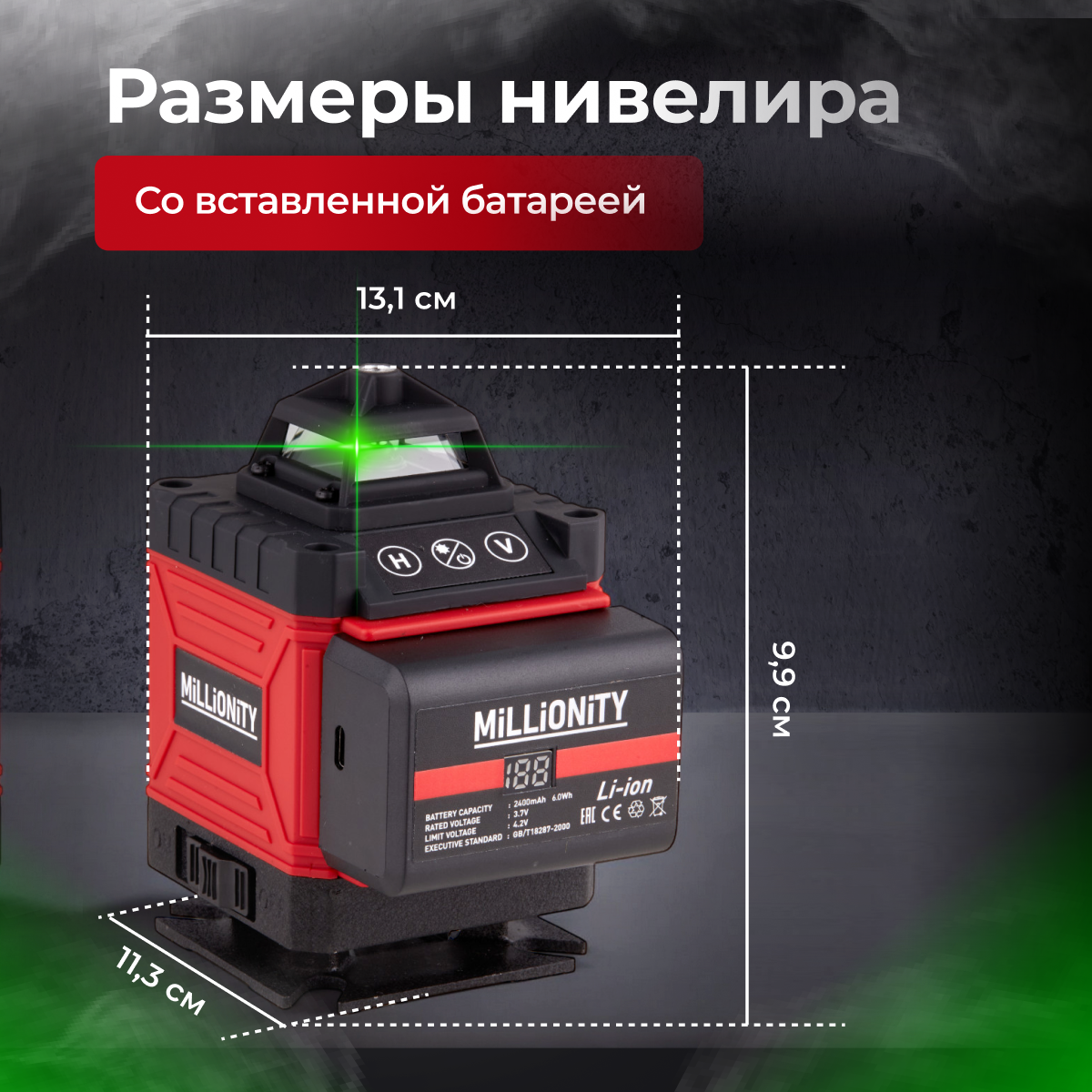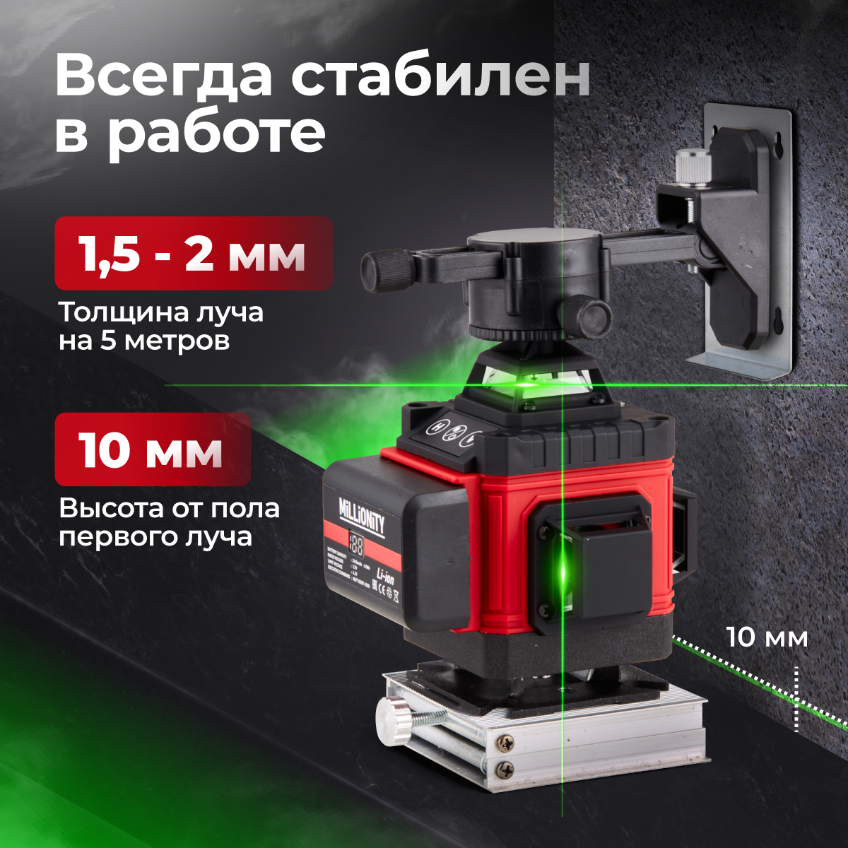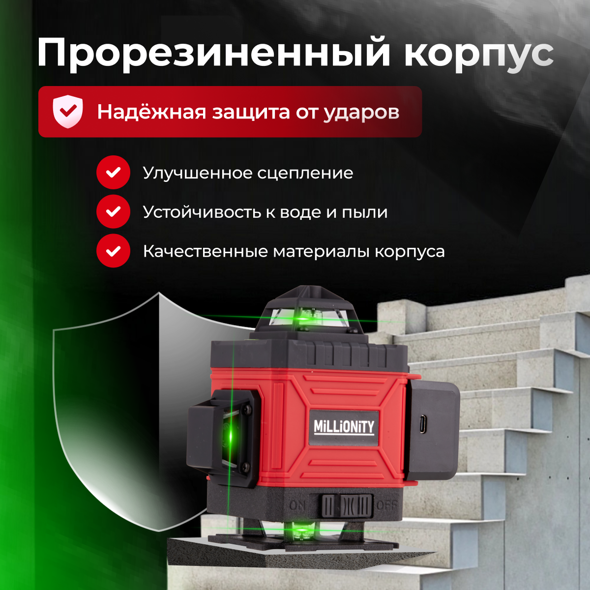 Лазерный уровень Millionity 4d 360°, Профессиональный нивелир 16 линий, зеленый луч, с аксессуарами в мягком кейсе. интересное: