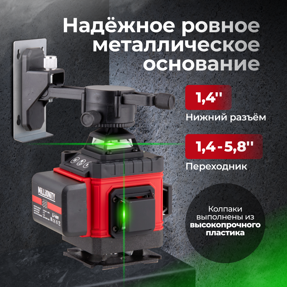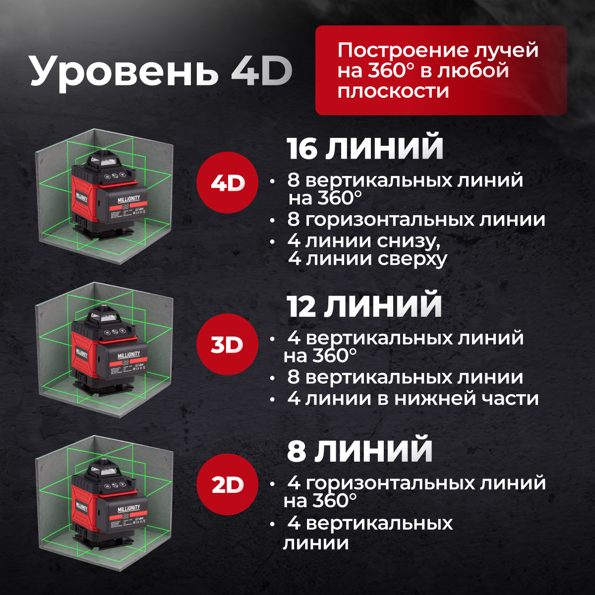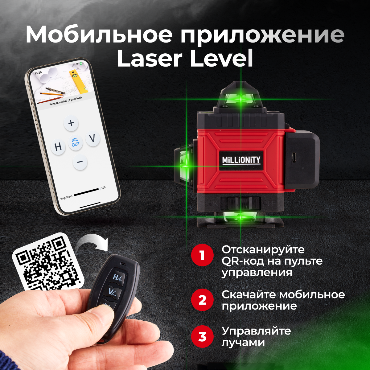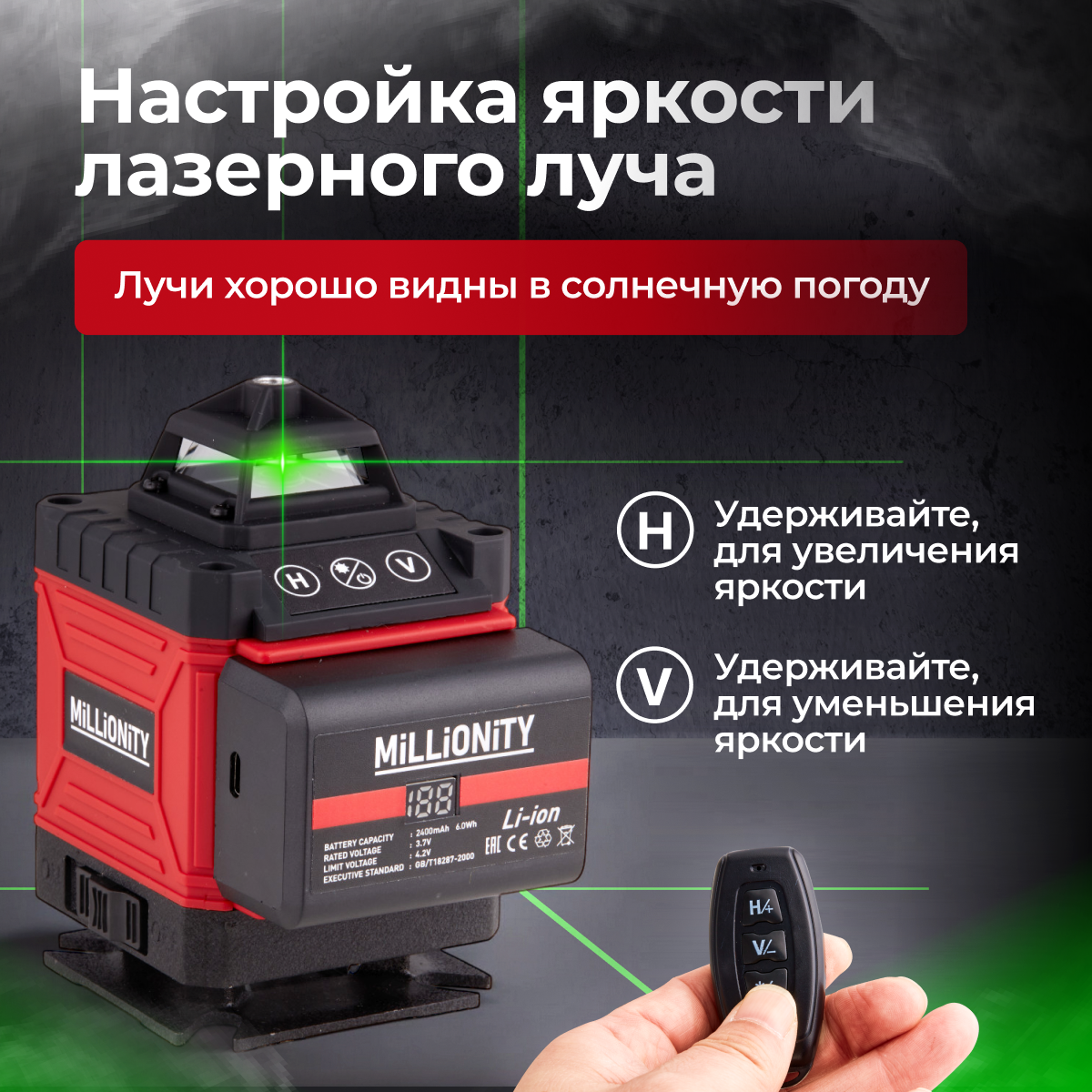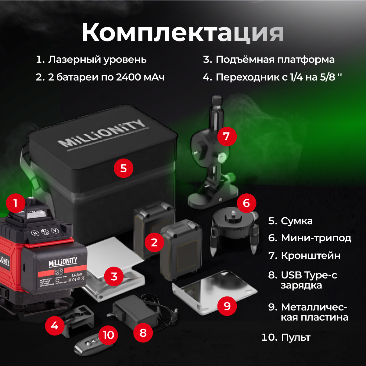 Лазерный уровень Millionity 4d 360°, Профессиональный нивелир 16 линий, зеленый луч, с аксессуарами в мягком кейсе. интересное: