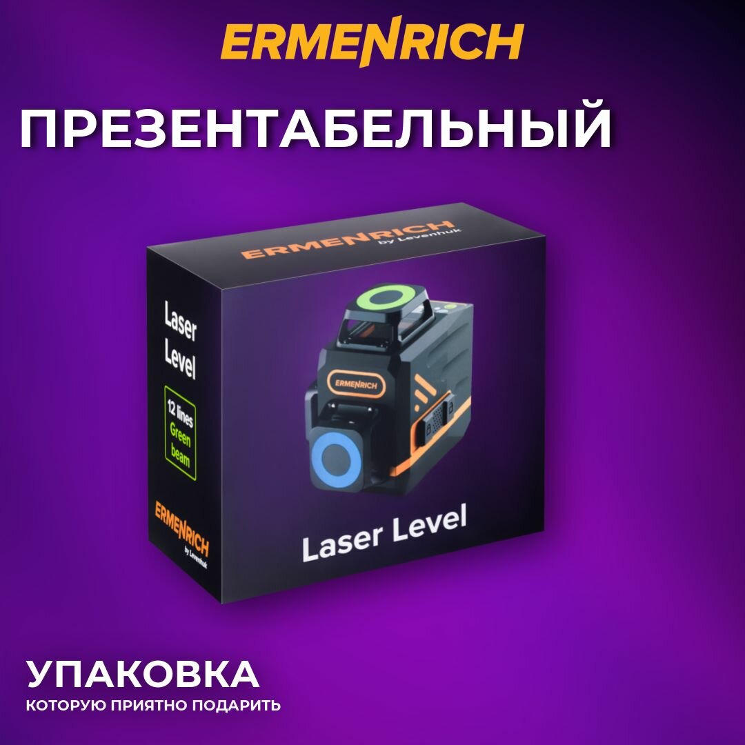 Лазерный уровень, нивелир Ermenrich LV60 PRO 3D, зеленый луч, 12 линий на 360 градусов интересное: