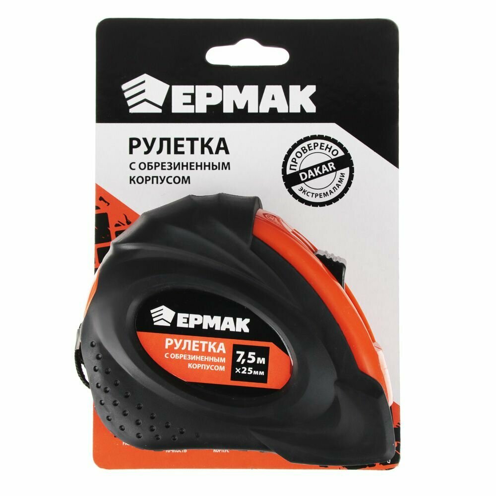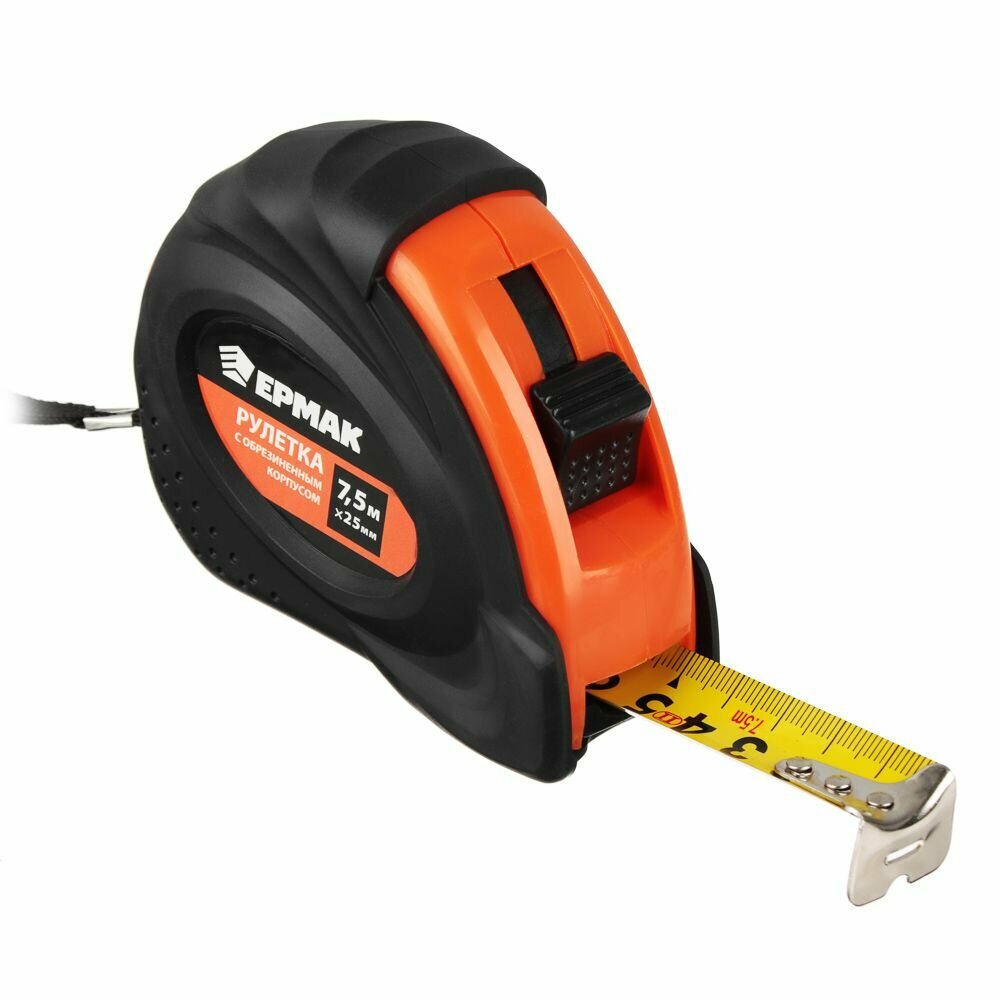 Купить Рулетка измерительная с обрезиненным корпусом ЕРМАК, строительная рулетка, 7,5мх25мм