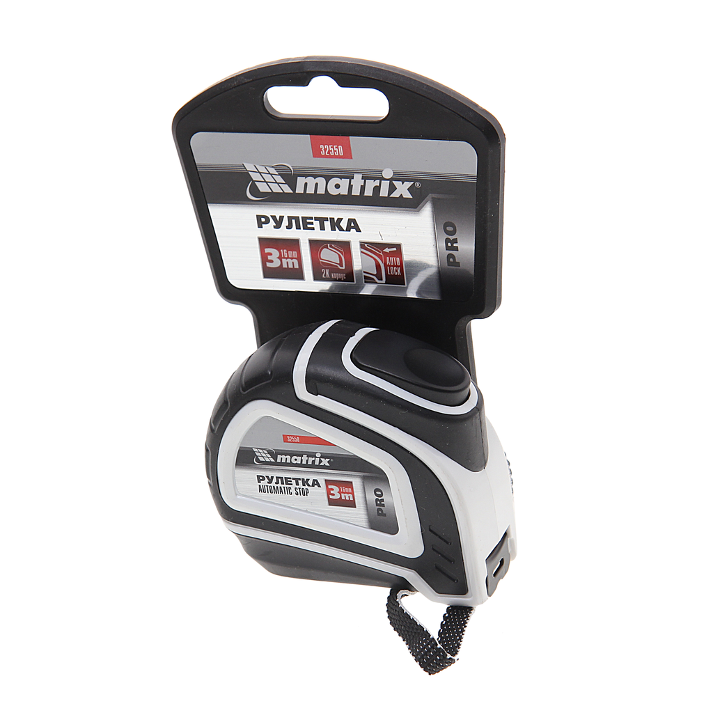 Купить Рулетка Matrix Autostop 3 м х 16 мм, двухкомпонентный корпус, автоматическая фиксация, PRO 32550