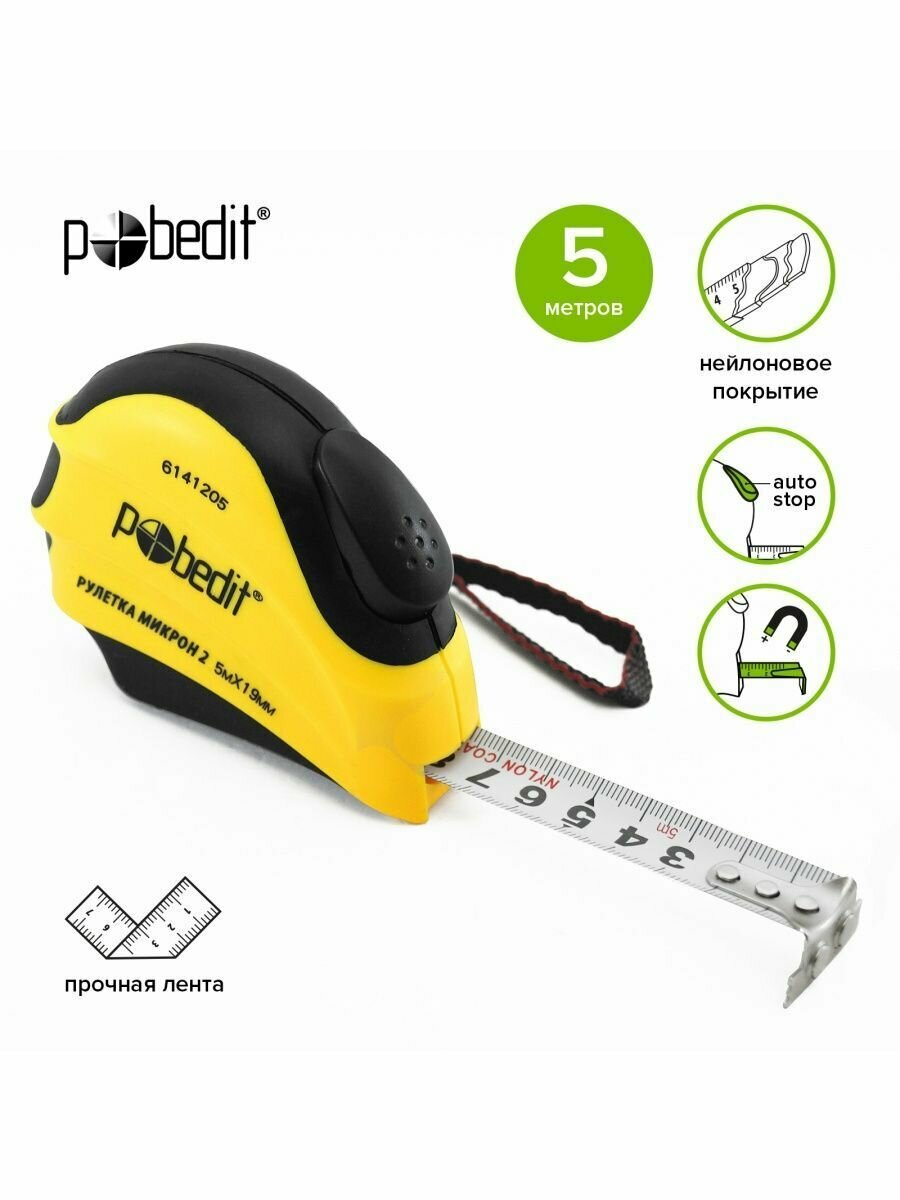 Рулетка строительная 5 м х 19 мм прорезиненная Pobedit интересное: