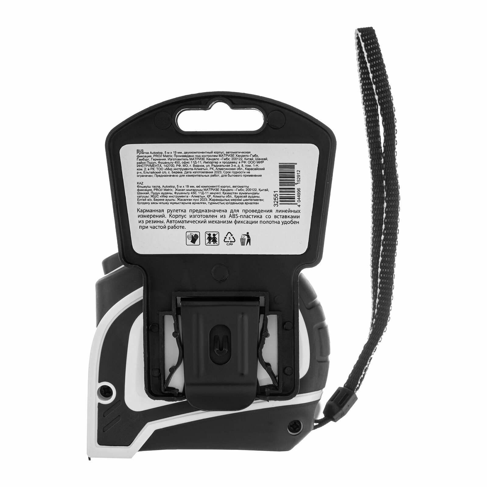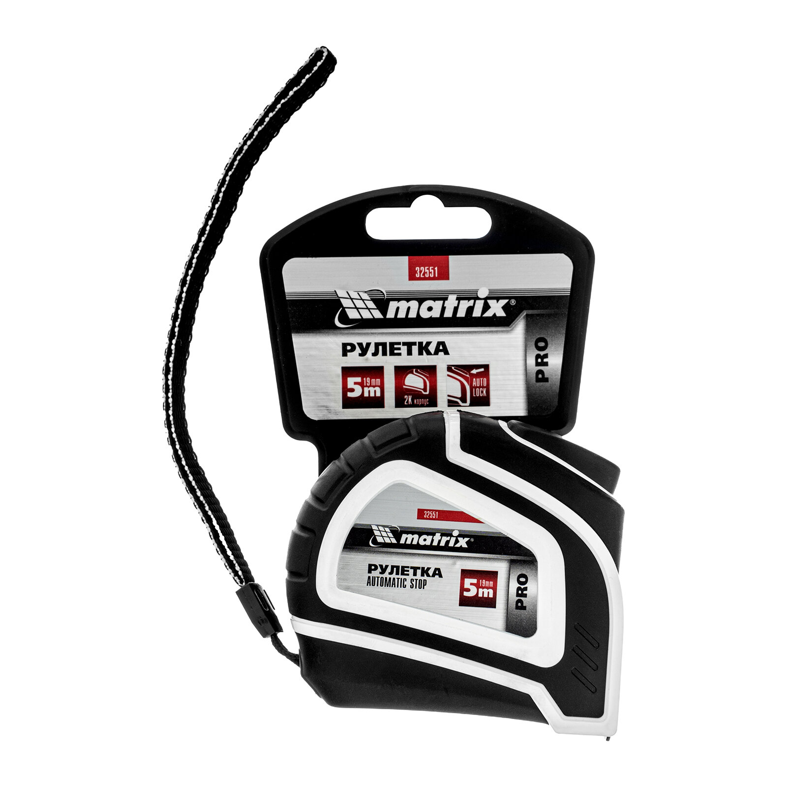 Купить Рулетка Matrix Autostop 5 м х 19 мм, двухкомпонентный корпус, автоматическая фиксация, PRO 32551