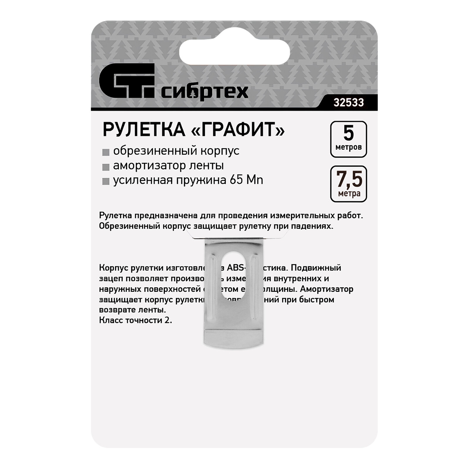 Рулетка Сибртех Графит обрезиненный корпус, амортизатор, 7, 5 м х 25 мм 32533 интересное: