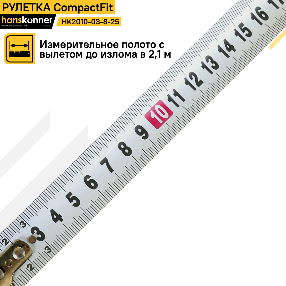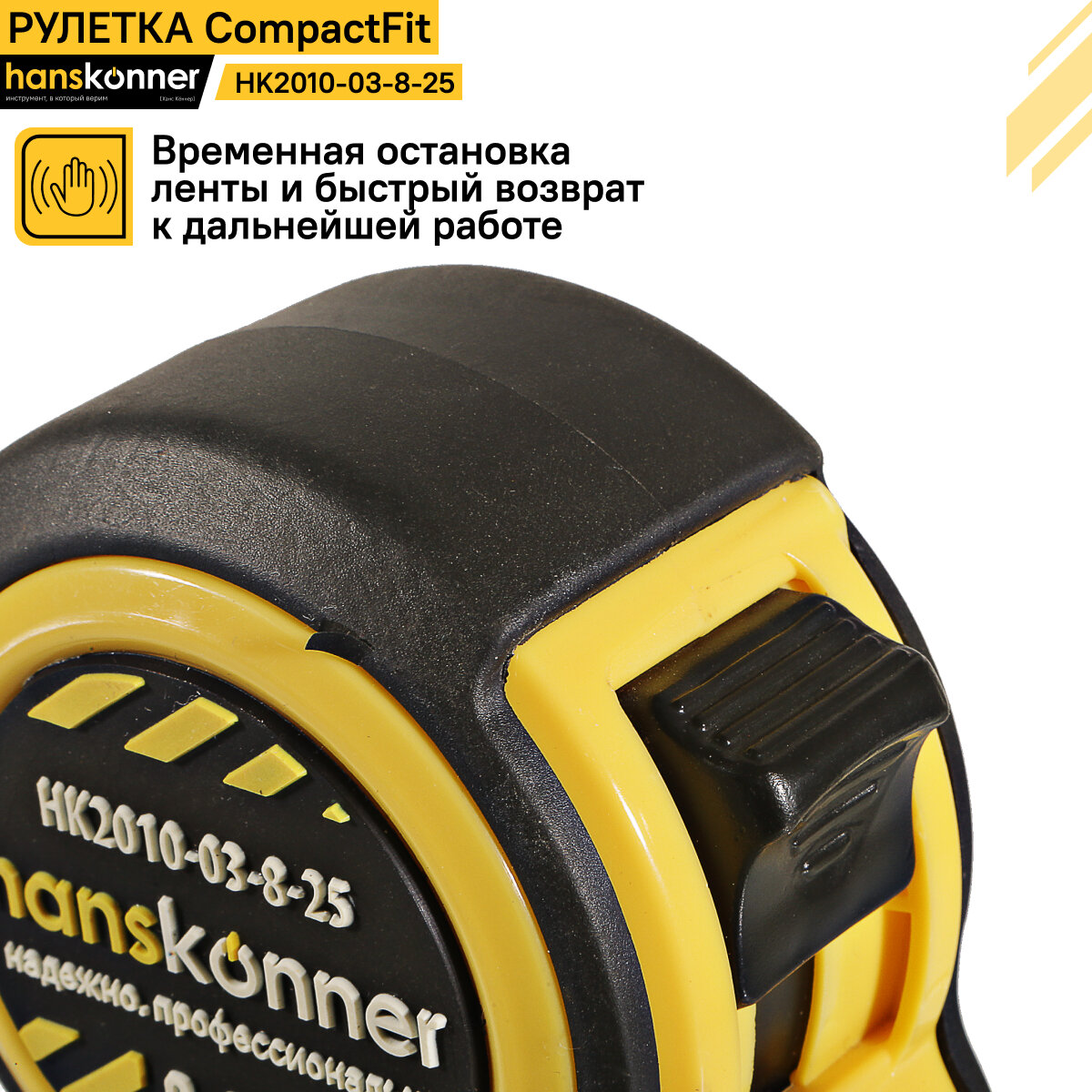 Рулетка Hanskonner HK2010-03-8-25, прорезиненный корпус, 8x25 мм интересное: