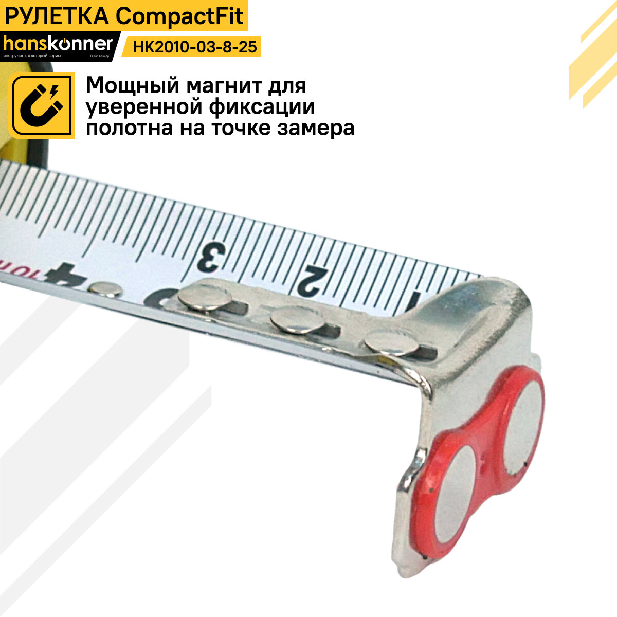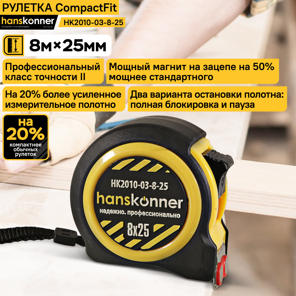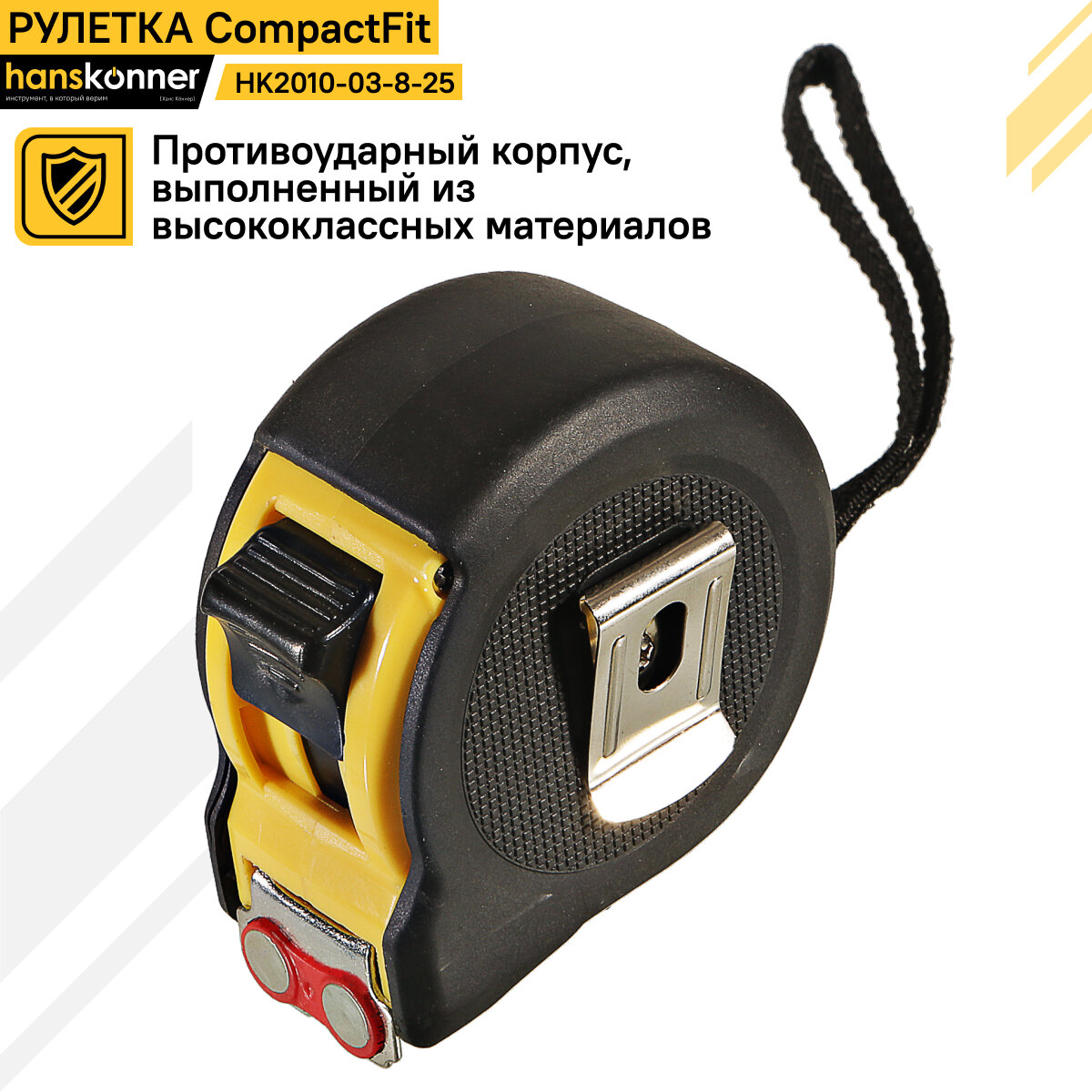 Купить Рулетка Hanskonner HK2010-03-8-25, прорезиненный корпус, 8x25 мм