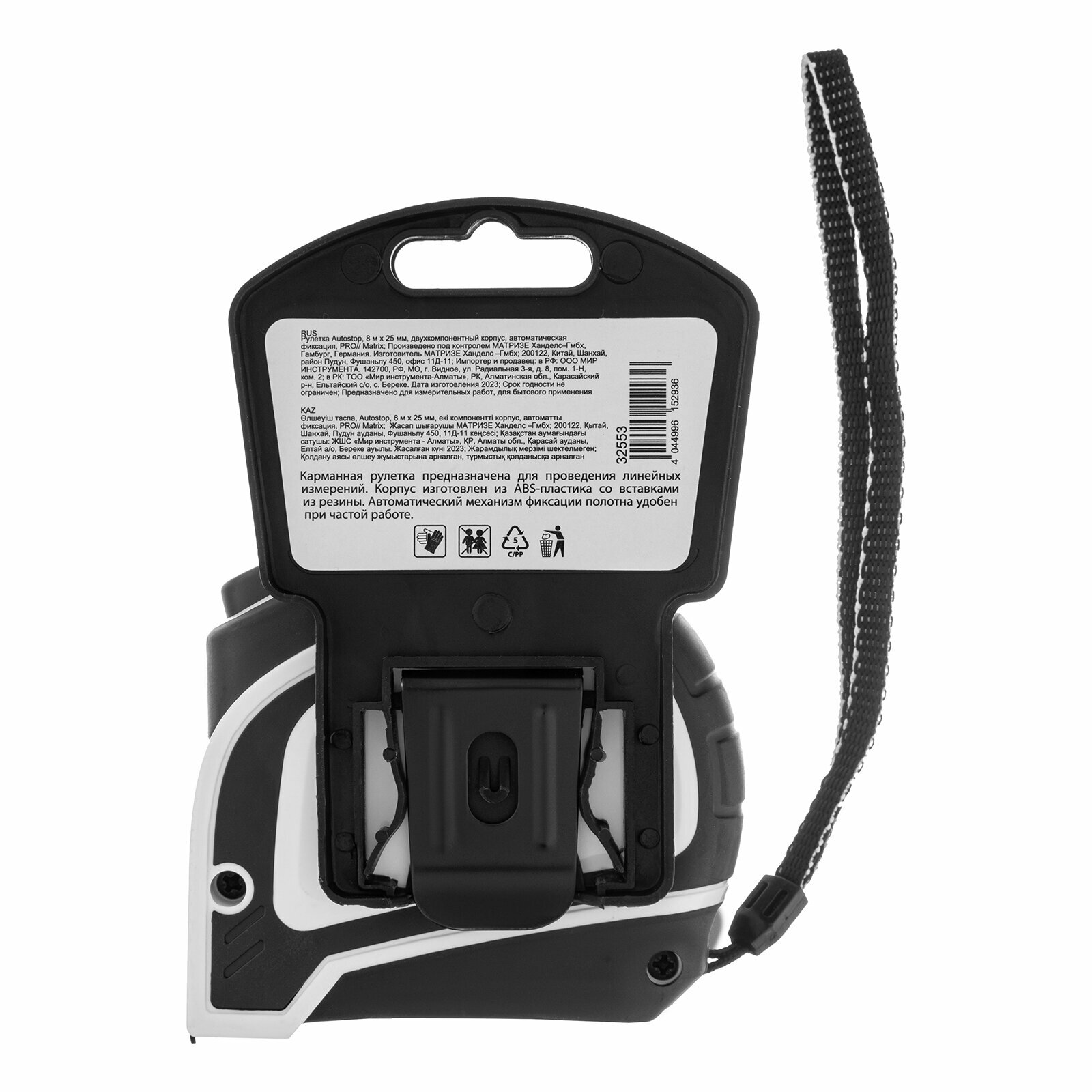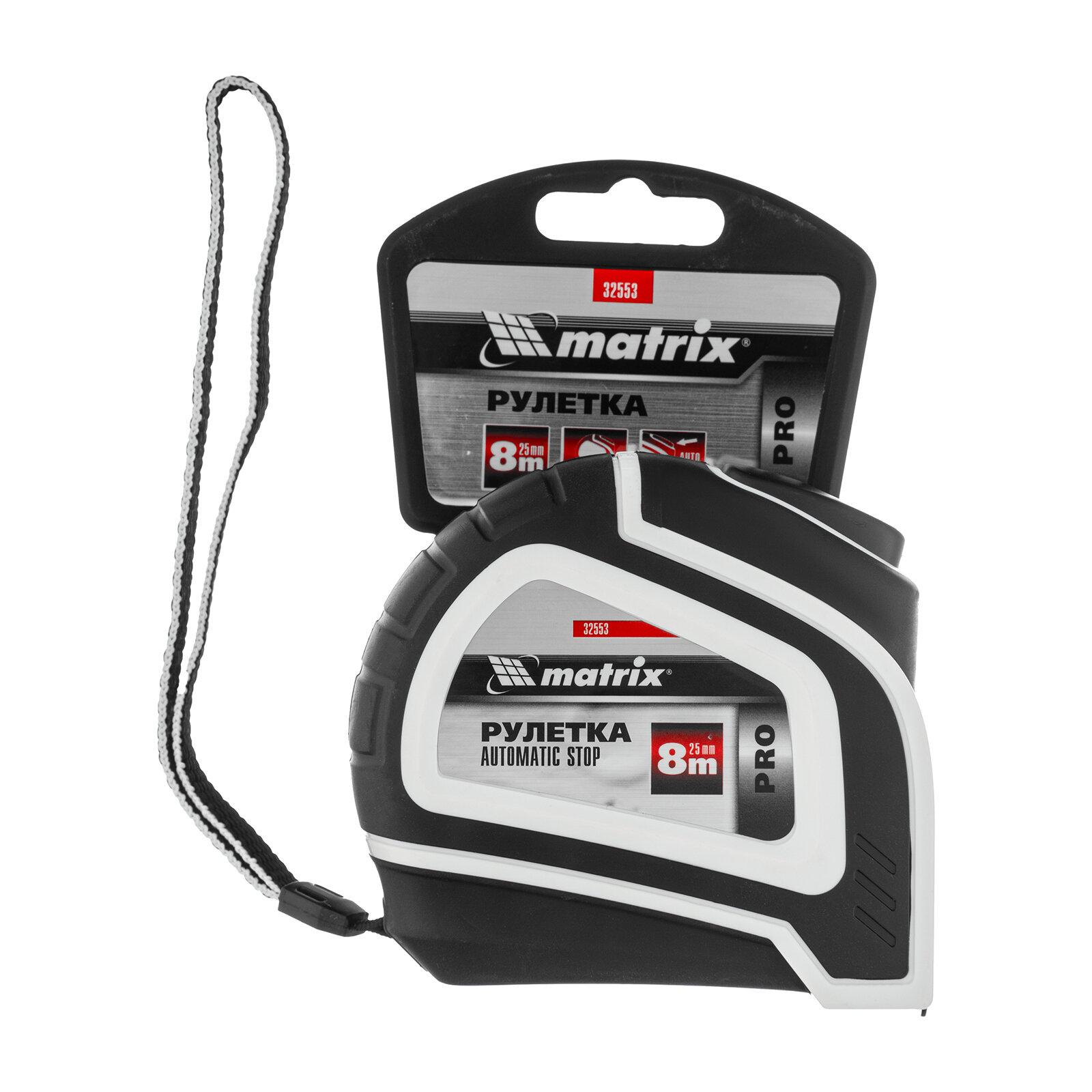 Рулетка Matrix Autostop 8 м х 25 мм, двухкомпонентный корпус, автоматическая фиксация, PRO 32553 интересное: