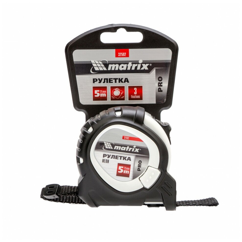 Рулетка Matrix Neon 5 м x 25 мм, обрезиненный корпус, 3 фиксации, PRO 32592 интересное: