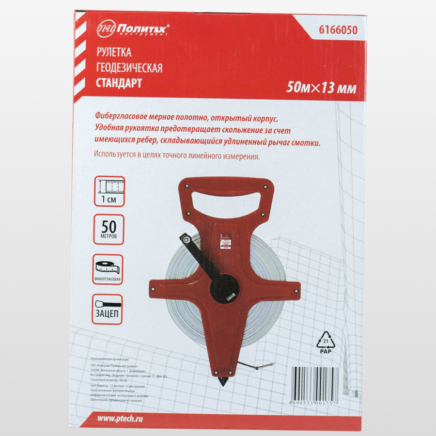 Рулетка измерительная геодезическая 50 м х 13 мм с фибергласной лентой Политех Инструмент интересное: