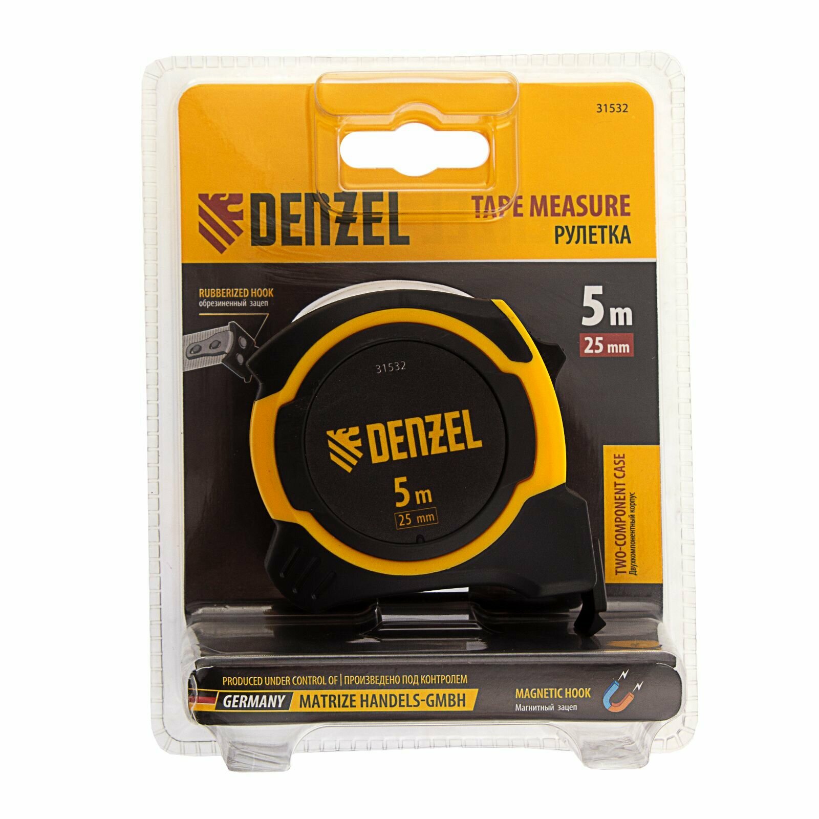 Купить Рулетка 5м х 25мм, двухкомп. корпус, магнитный обрезиненный зацеп Denzel