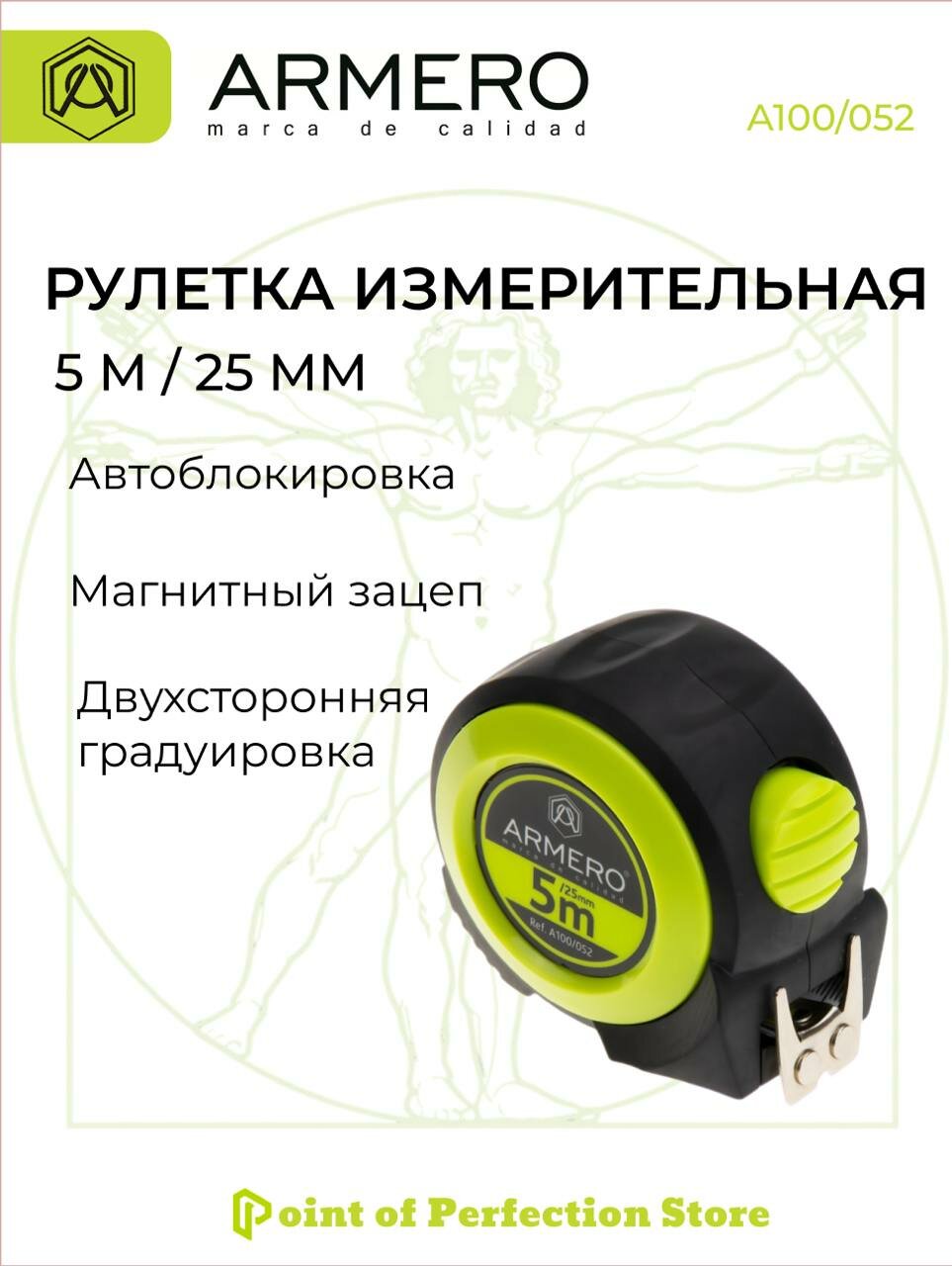 Рулетка с автоблокировкой 5м х 25мм ARMERO А100/052 интересное:
