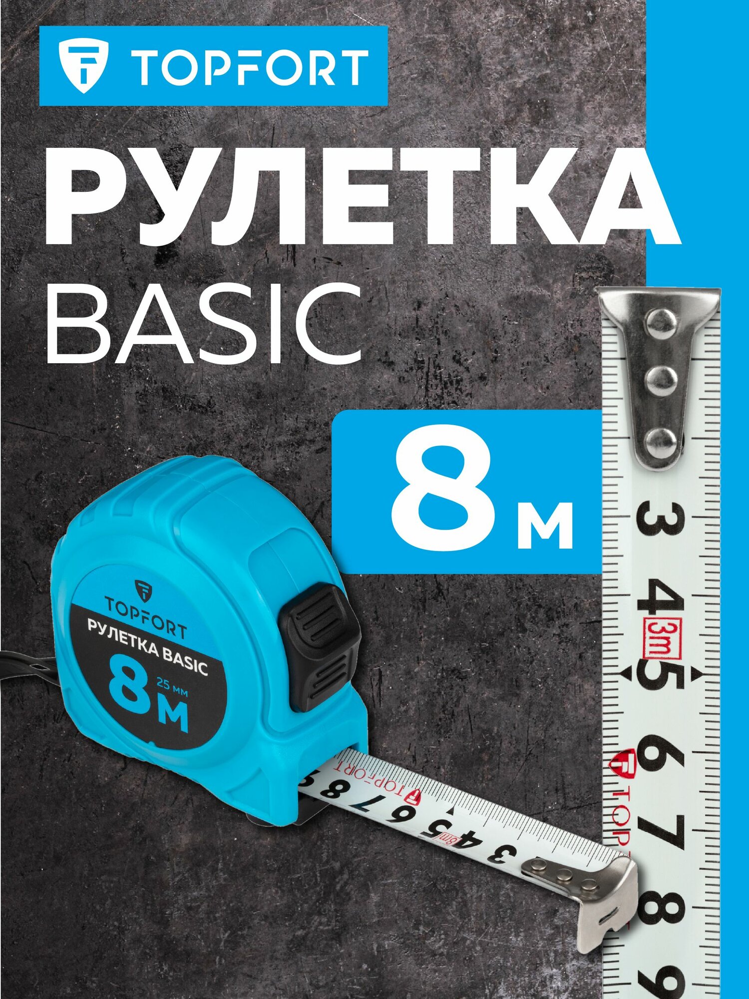 Купить Рулетка строительная TOPFORT Basic измерительная , с автстопом, 8 м х 25 мм