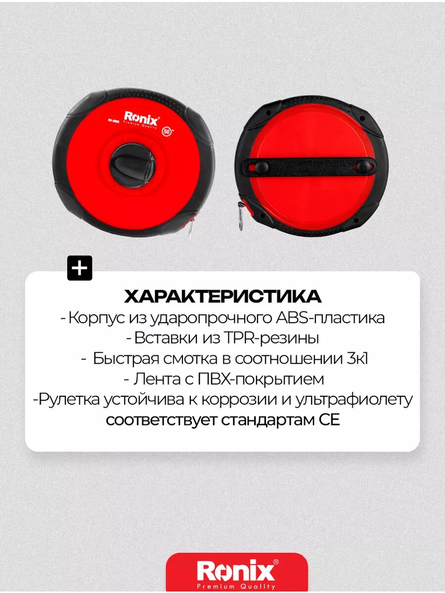 Рулетка измерительная Ronix 50 метров строительная (геодезическая) 3 к 1 интересное: