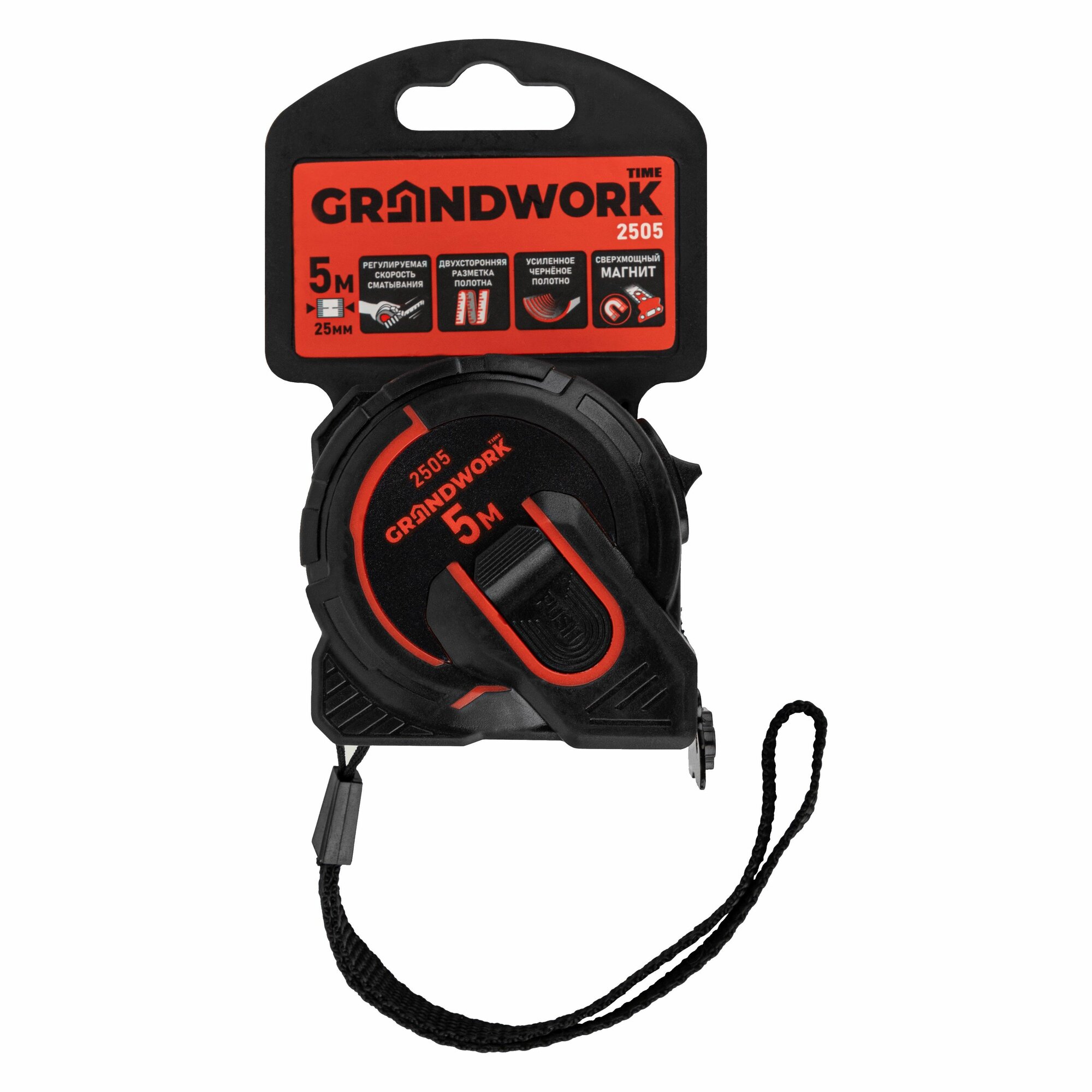 Купить Рулетка 5 метров с черным защитным полотном, большими цифрами GRANDWORK 2505