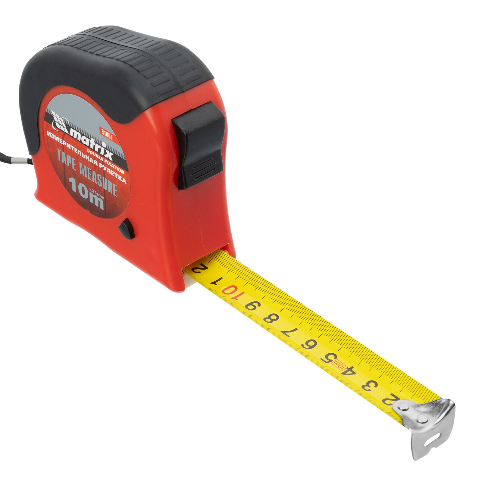 Купить Рулетка Matrix Double fixation 10 м х 25 мм, обрезиненный корпус, двойная плавная фиксация 31061