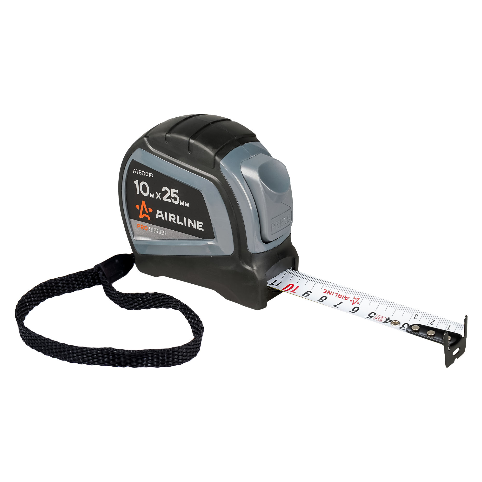 Купить Рулетка в прорезиненном корпусе 10мх25мм PRO, автостоп, дв. зацеп, дв. шкала ATBQ018 AIRLINE