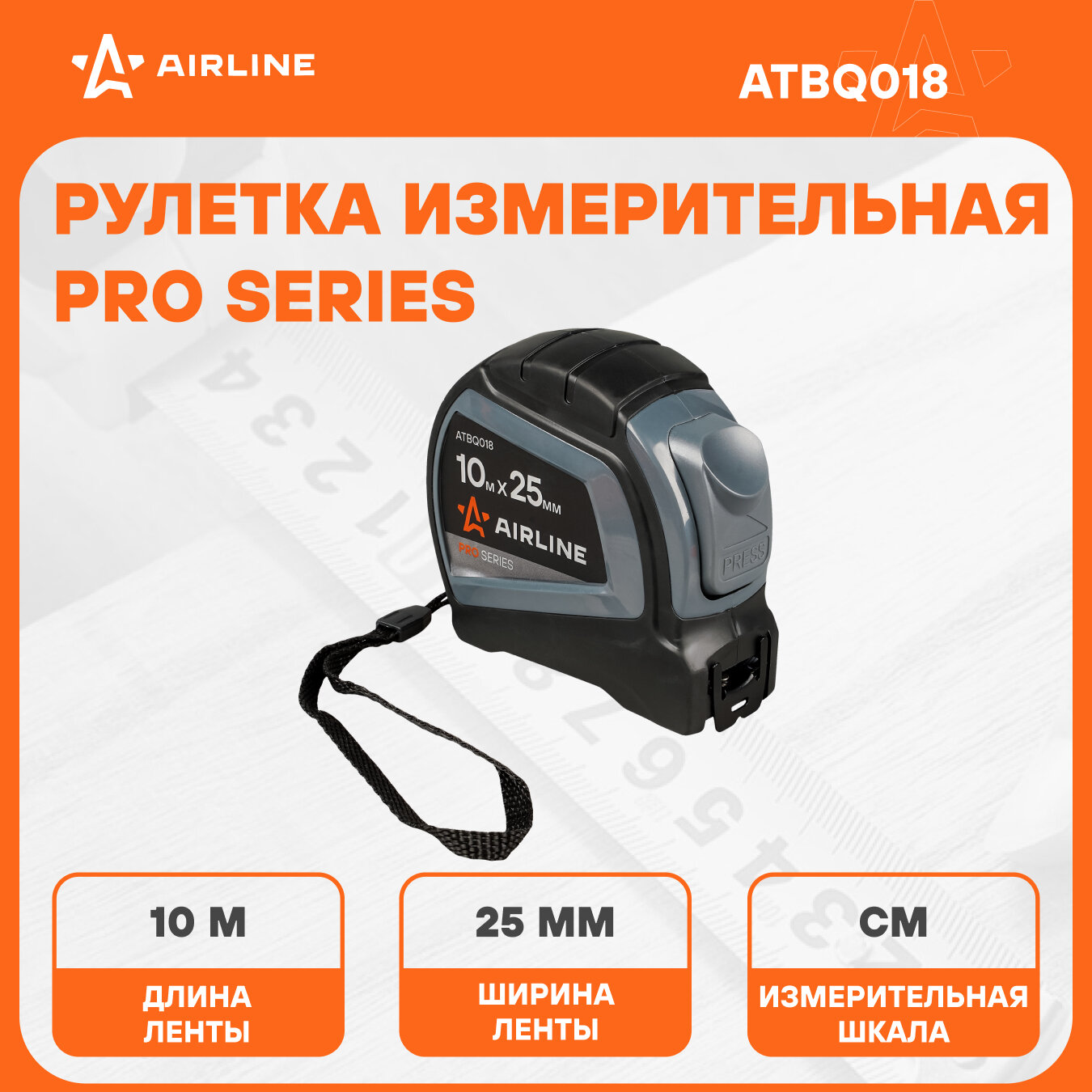 Рулетка в прорезиненном корпусе 10мх25мм PRO, автостоп, дв. зацеп, дв. шкала ATBQ018 AIRLINE интересное: