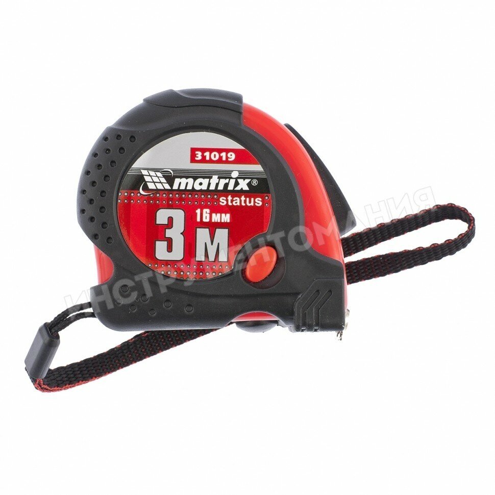 Купить Рулетка Matrix Status magnet fixation 3 м х 16 мм, обрезиненный корпус, зацеп с магнитом 31019