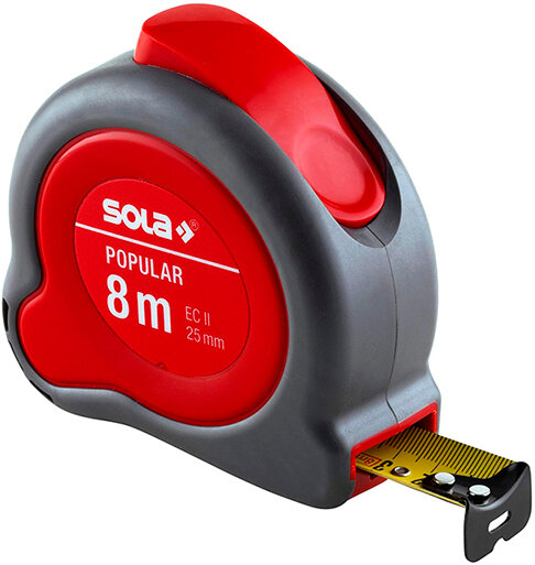 SOLA Рулетка Popular PP 8 м, 25 мм, II класс точности 50024401 интересное: