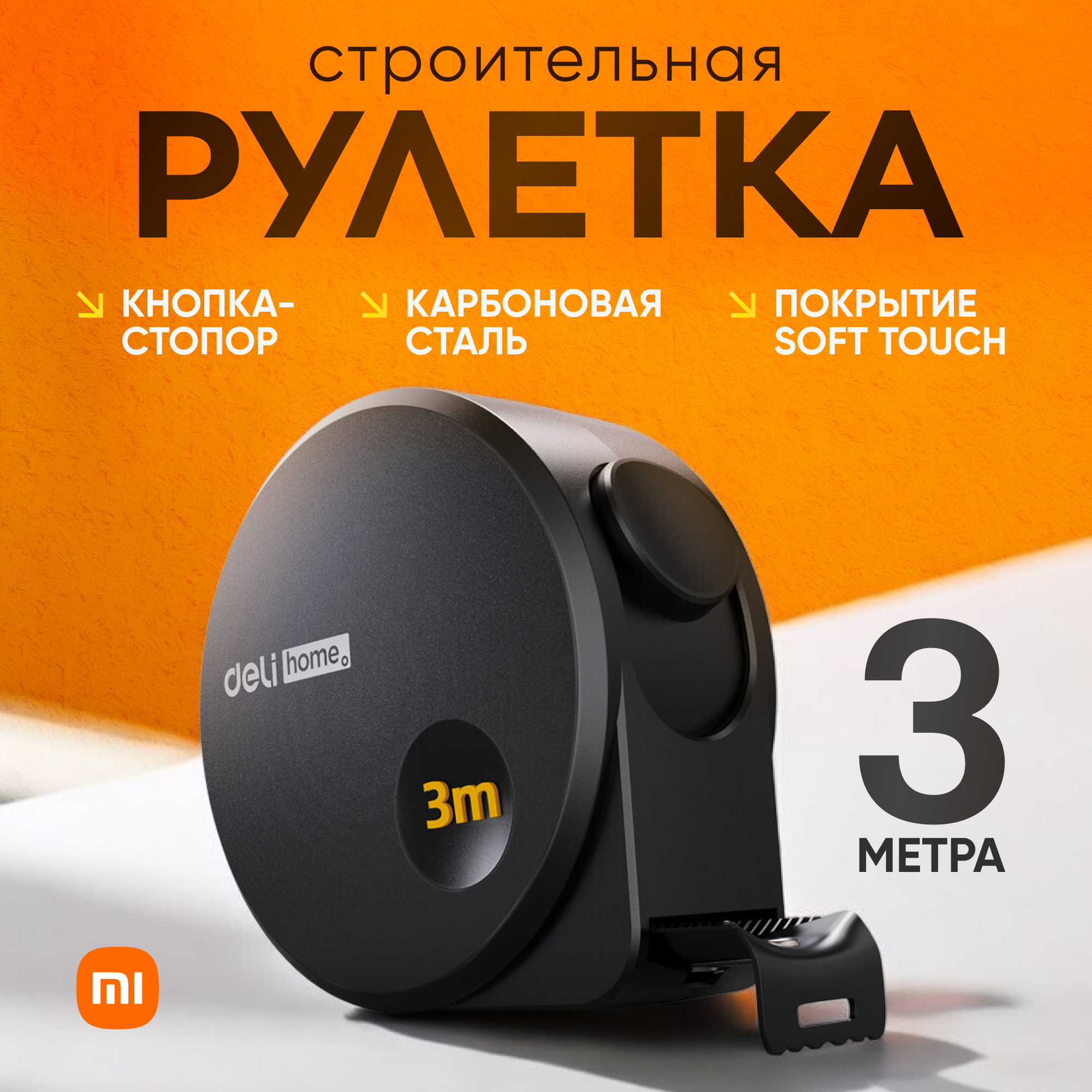 Рулетка Xiaomi Deli Home строительная карбоновая (3 метра) интересное:
