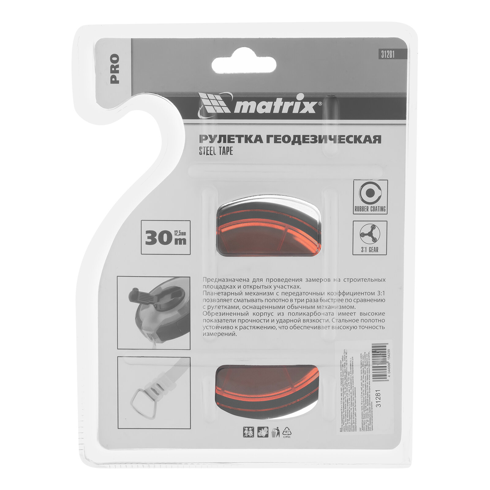 Купить Рулетка геодезическая Matrix 30 м х 125 мм, закр. корп, стальная лента, односторон. шкала, PRO 31281