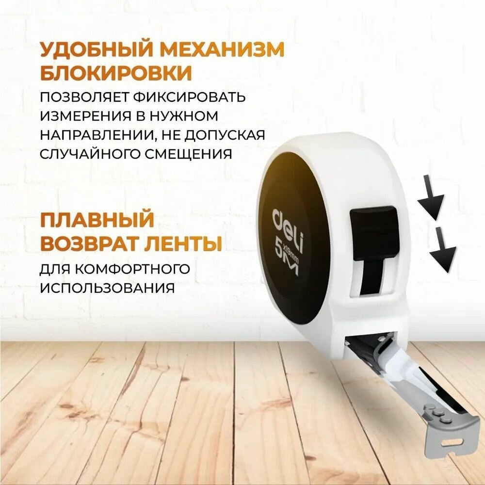 Рулетка "Home Series White" Deli H8005B 5м х 19мм (Эксклюзивный дизайн, софттач пластик, подарочная упаковка) интересное: