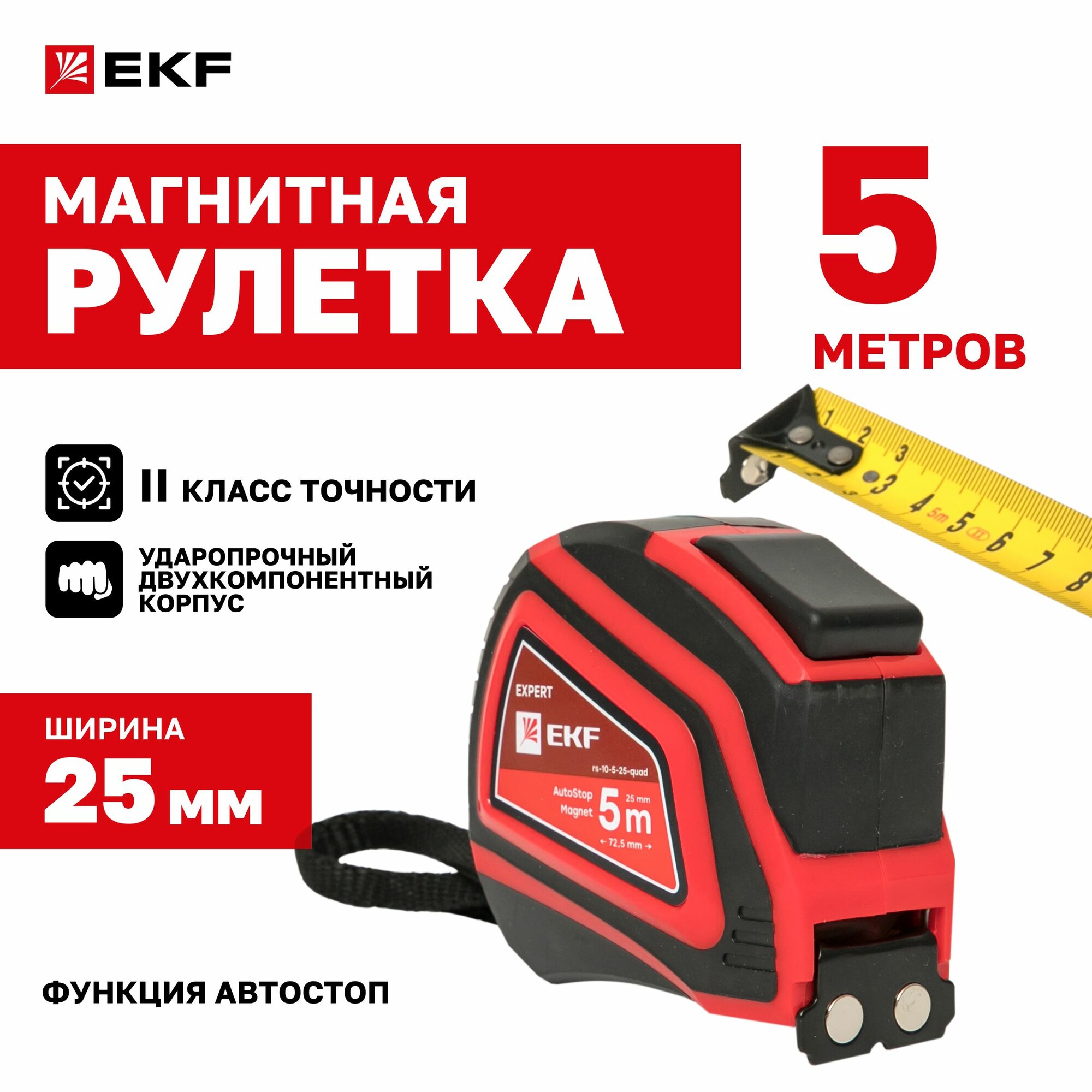 Купить Рулетка измерительная EKF Expert с автоматическим стопором 5м х 25мм РС-10