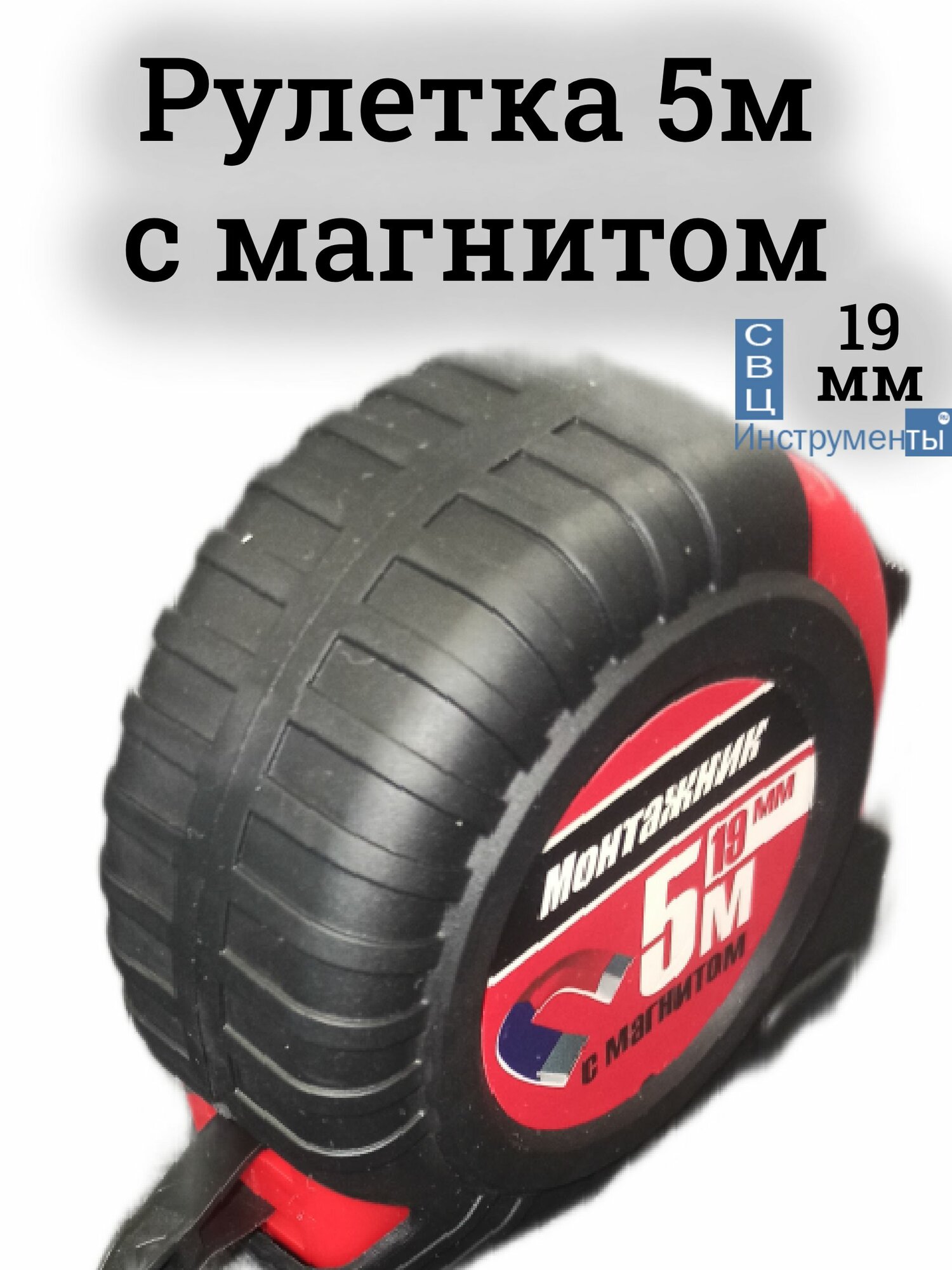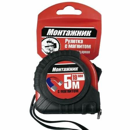 Рулетка Монтажник 5м/19мм обрезиненный пластиковый корпус с магнитным крюком (10/уп, 60/кор) (1шт) (601519) интересное: