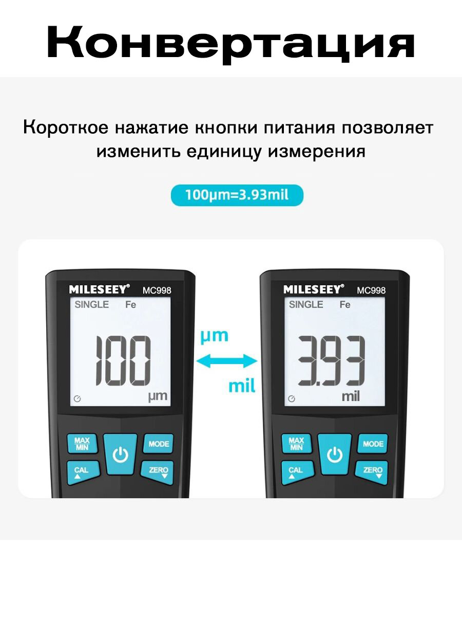 iCarTool Толщиномер лакокрасочных покрытий Fe/NFe IC-T150