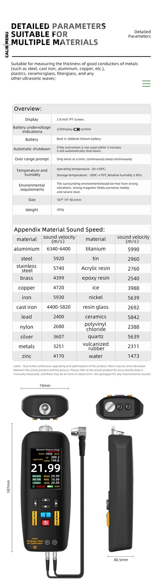 Интеллектуальный ультразвуковой толщиномер BSIDE T7, BSIDE T7 интересное: