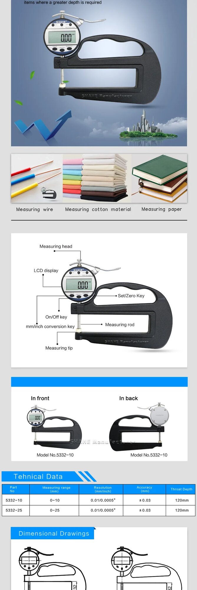 Цифровой толщиномер Shahe 0-10/25 мм, 0-25mm интересное: