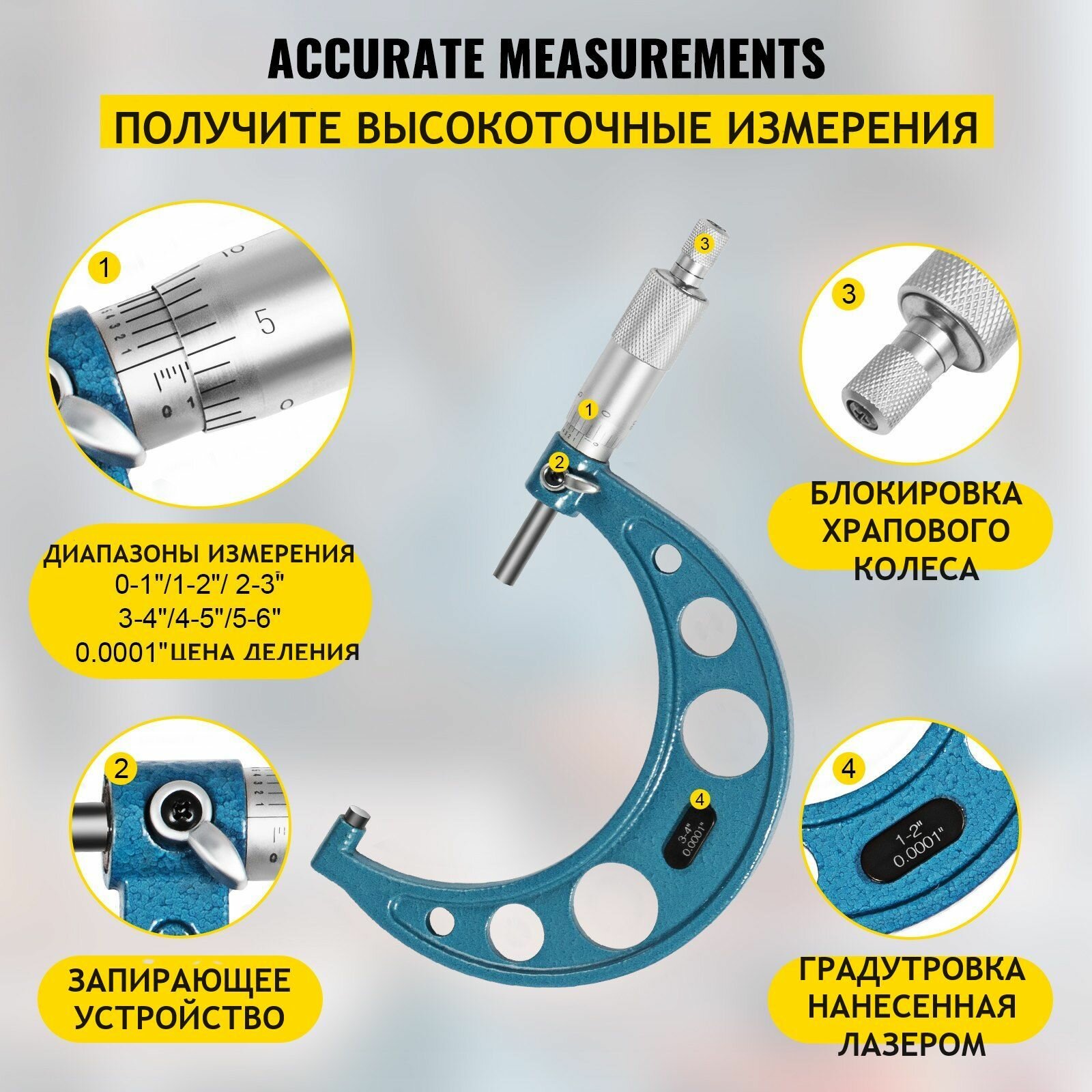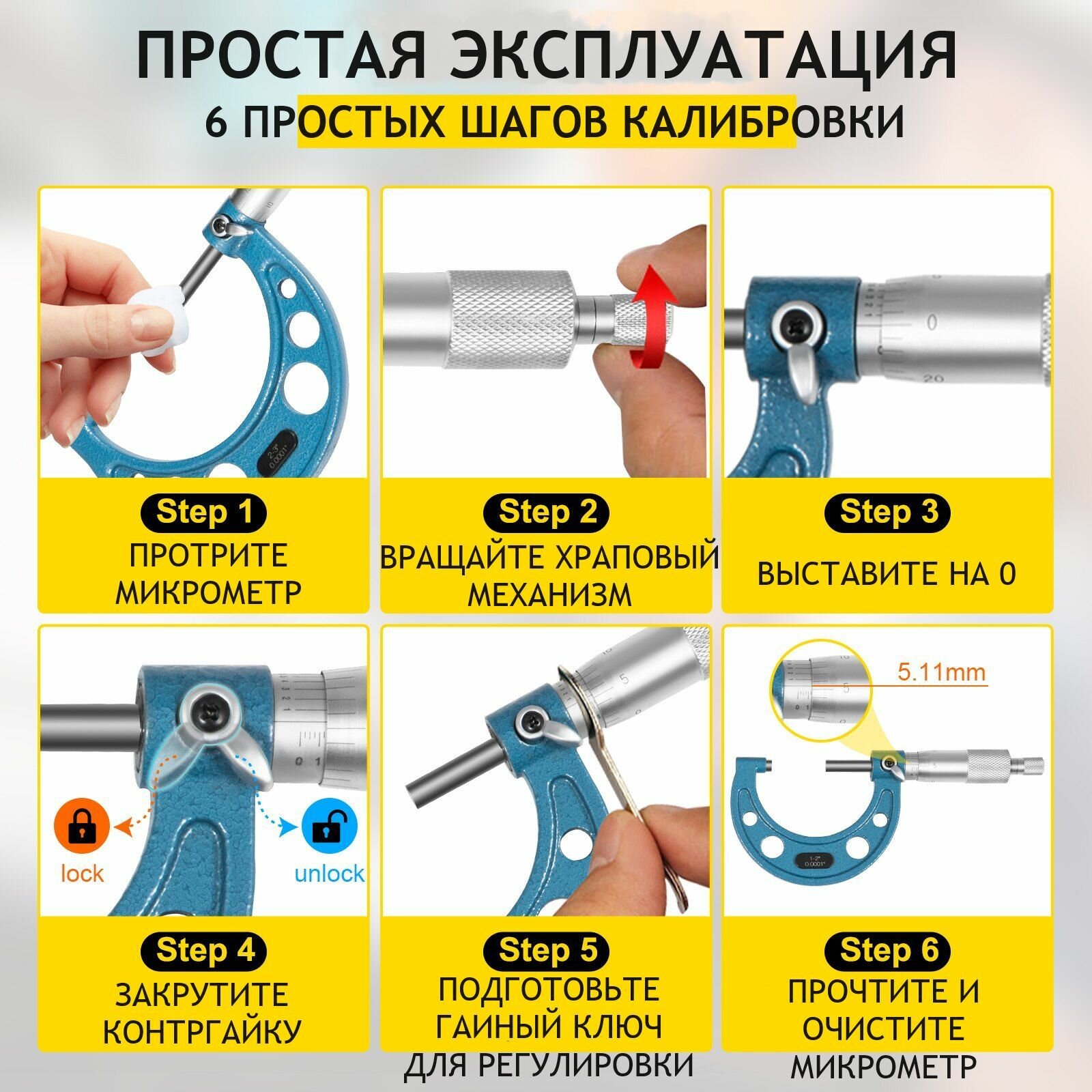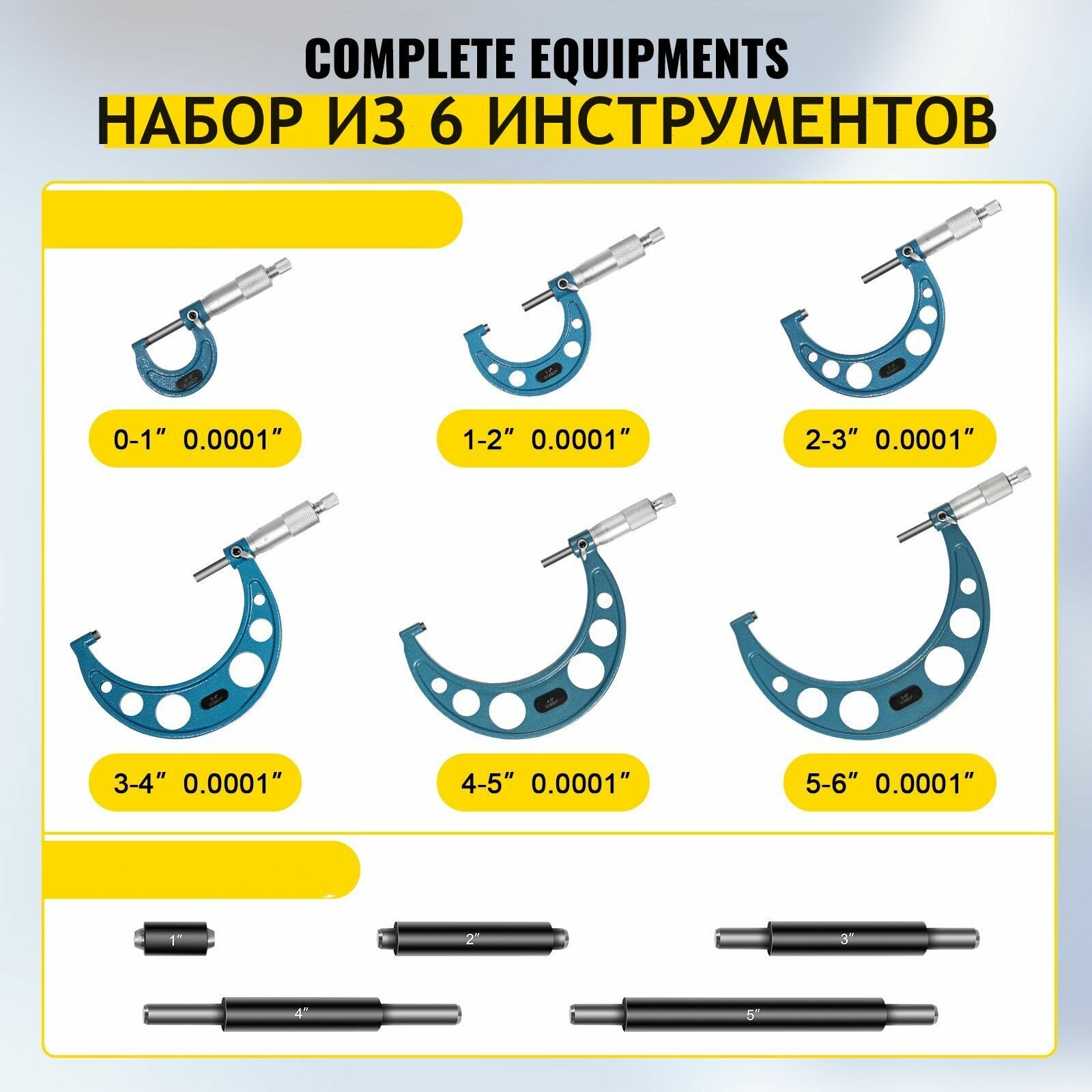Набор микрометров VEVOR QFC-6 с лазерной гравировкой и калибровочными стандартами 6 шт. интересное: