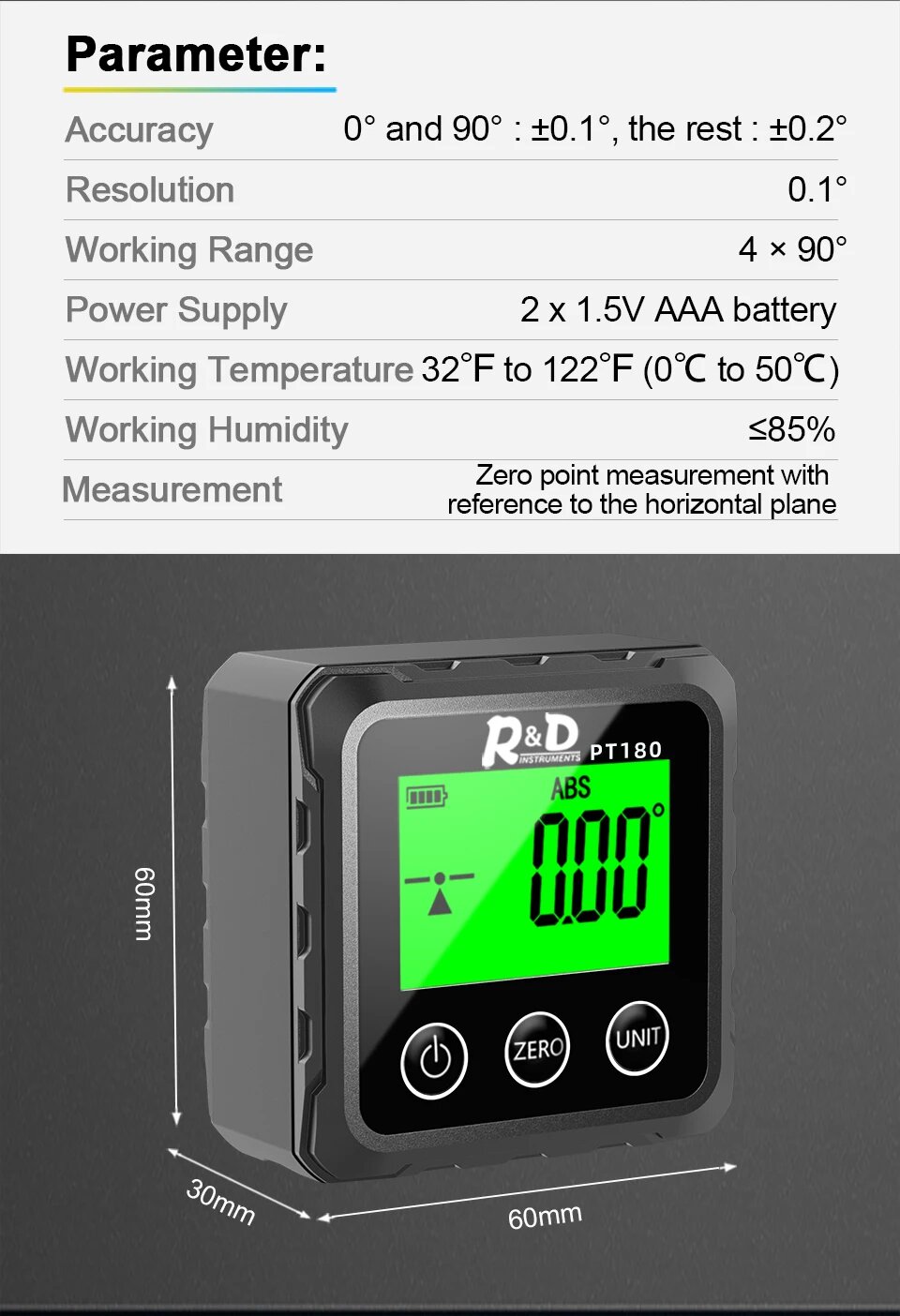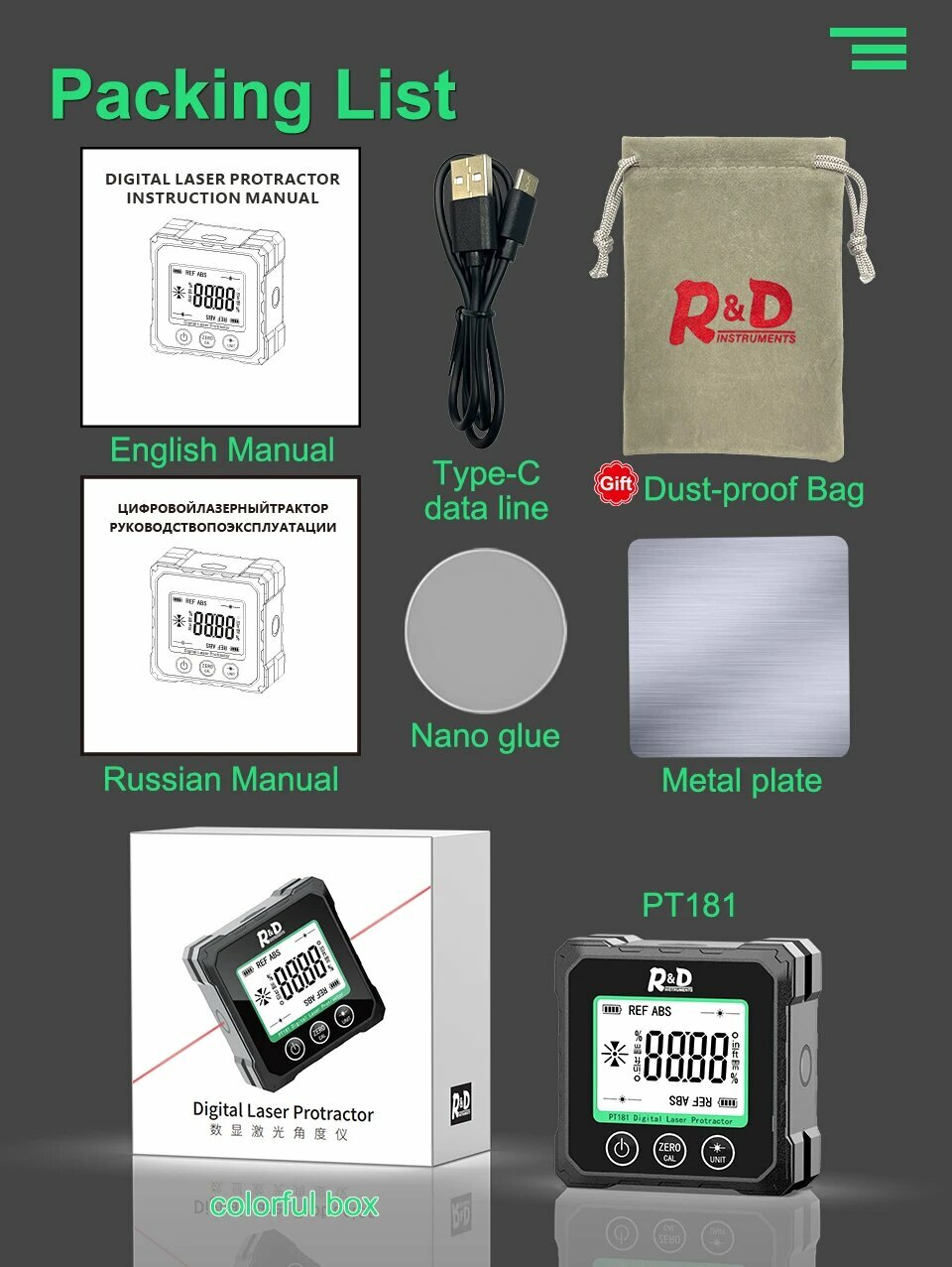 Лазерный цифровой транспортир R&D INSTRUMENTS PT180/PT181, PT180- no laser интересное: