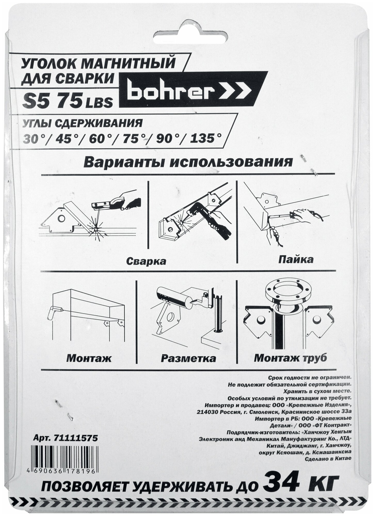 Уголок магнитный для сварки Bohrer S5 30гр/45гр/60гр/75гр/90гр/135гр 75LBS (до 34 кг удержание) (блистер) интересное:
