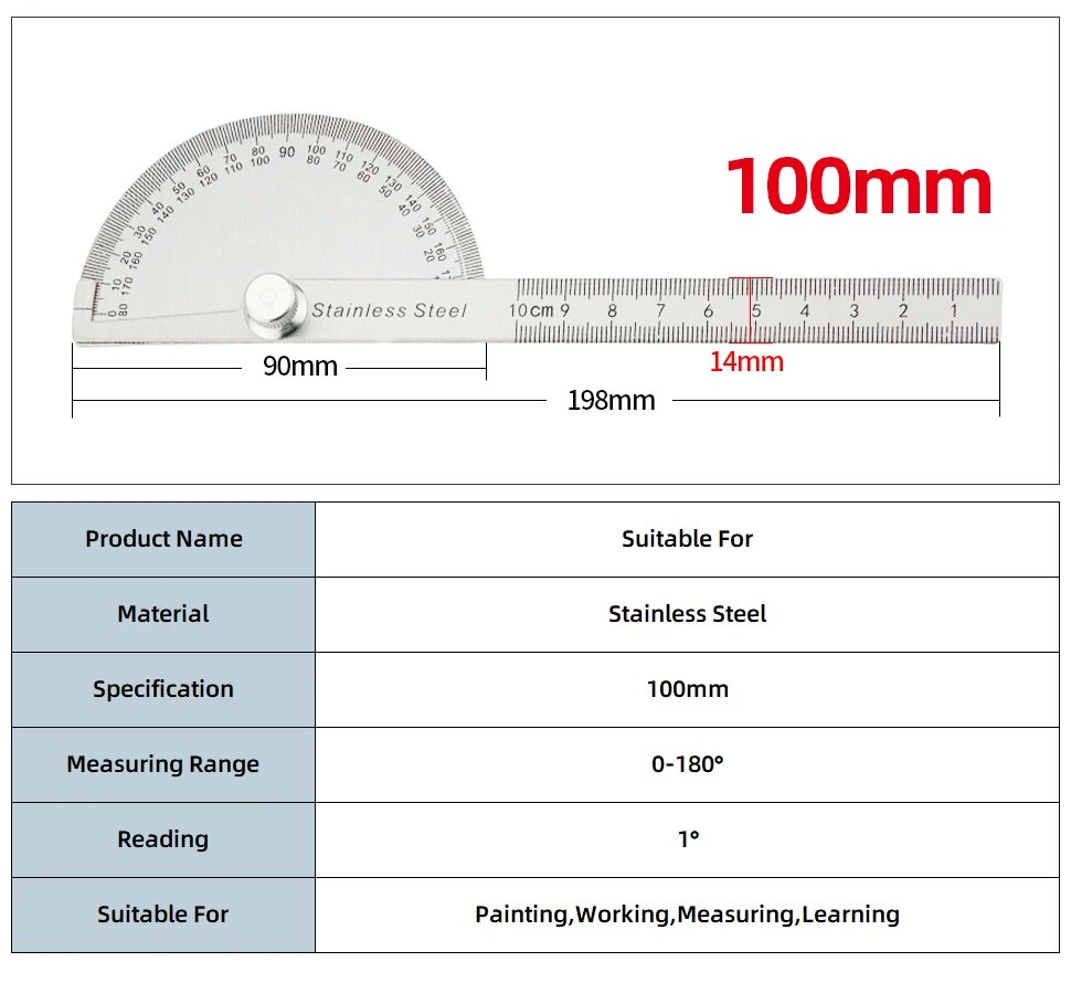 Транспортир Keyuesr 180 градусов нержавеющая сталь, Protractor Type C интересное: