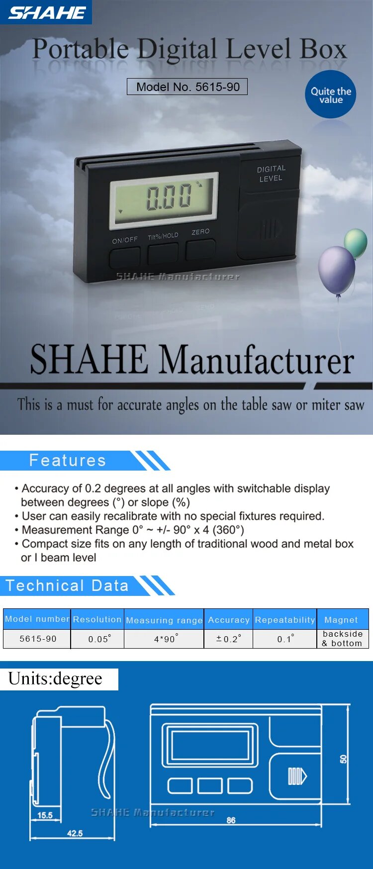 Цифровой угломер Shahe интересное: