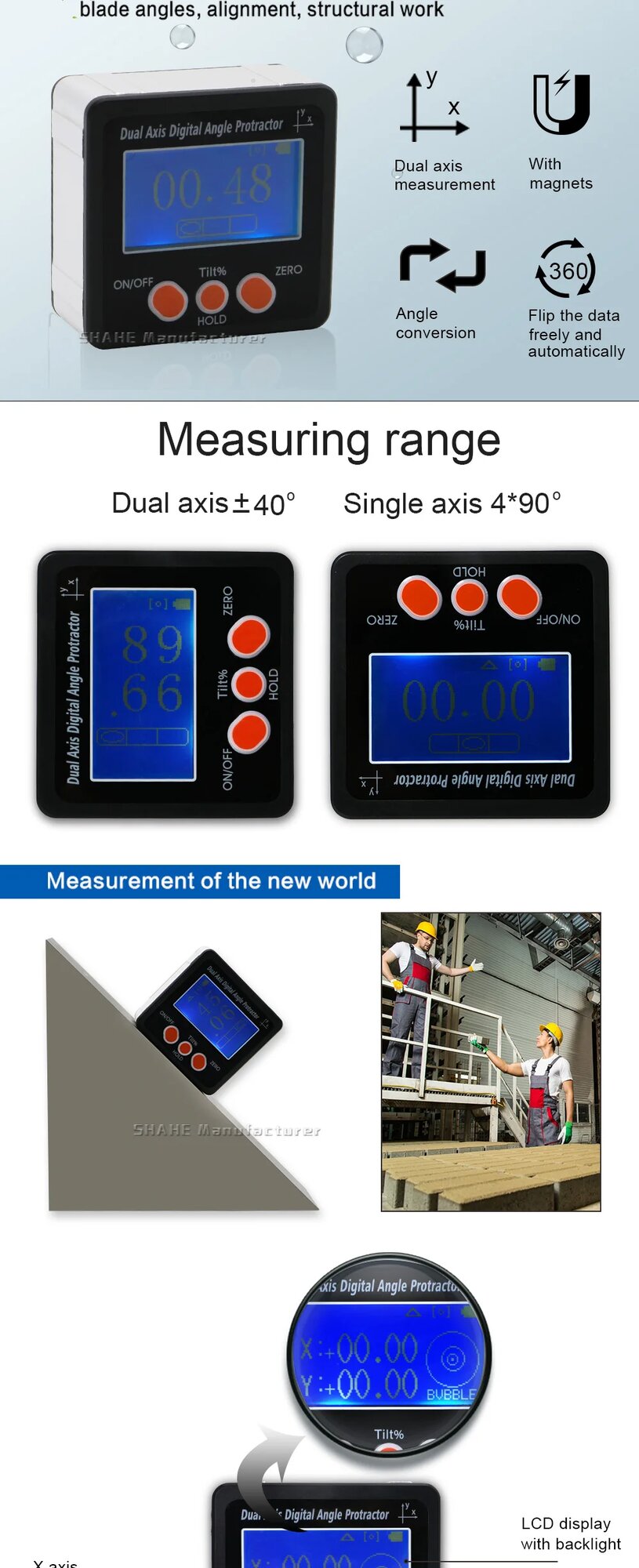 Купить SHAHE Цифровой транспортир двухосевой, With light and IP65