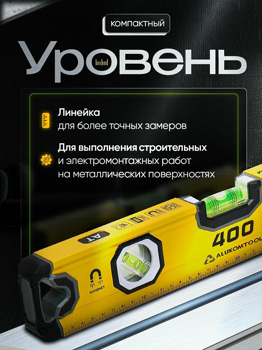 Ниже Вы можете прочитать отзывы на Уровень строительный магнитный усиленный пузырьковый, 400 мм, 3 индикатора, фрезерованный, зеркальный глазок, ознакомится с подробными характеристиками, посмотреть интересные обзоры и фотографии на Уровень строительный магнитный усиленный пузырьковый, 400 мм, 3 индикатора, фрезерованный, зеркальный глазок.