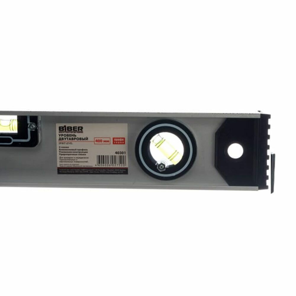 Уровень строительный рельс двутавровый 3 глазка, пузырьковый противоударный, 400 мм
