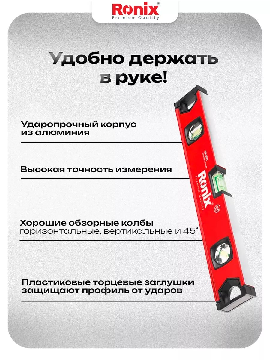 Уровень строительный пузырьковый Ronix 400 мм алюминиевый 3 ампулы 40 см интересное: