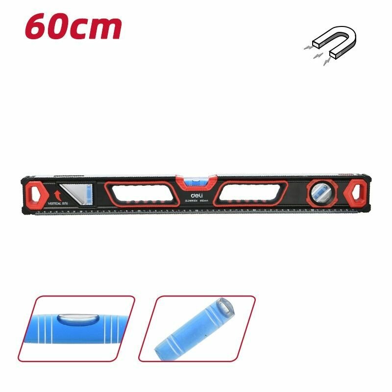 Купить Строительный пузырьковый уровень профессиональный 600мм Deli DL290600K (зеркальный глазок, двухсторонняя фрезеровка, магнит)