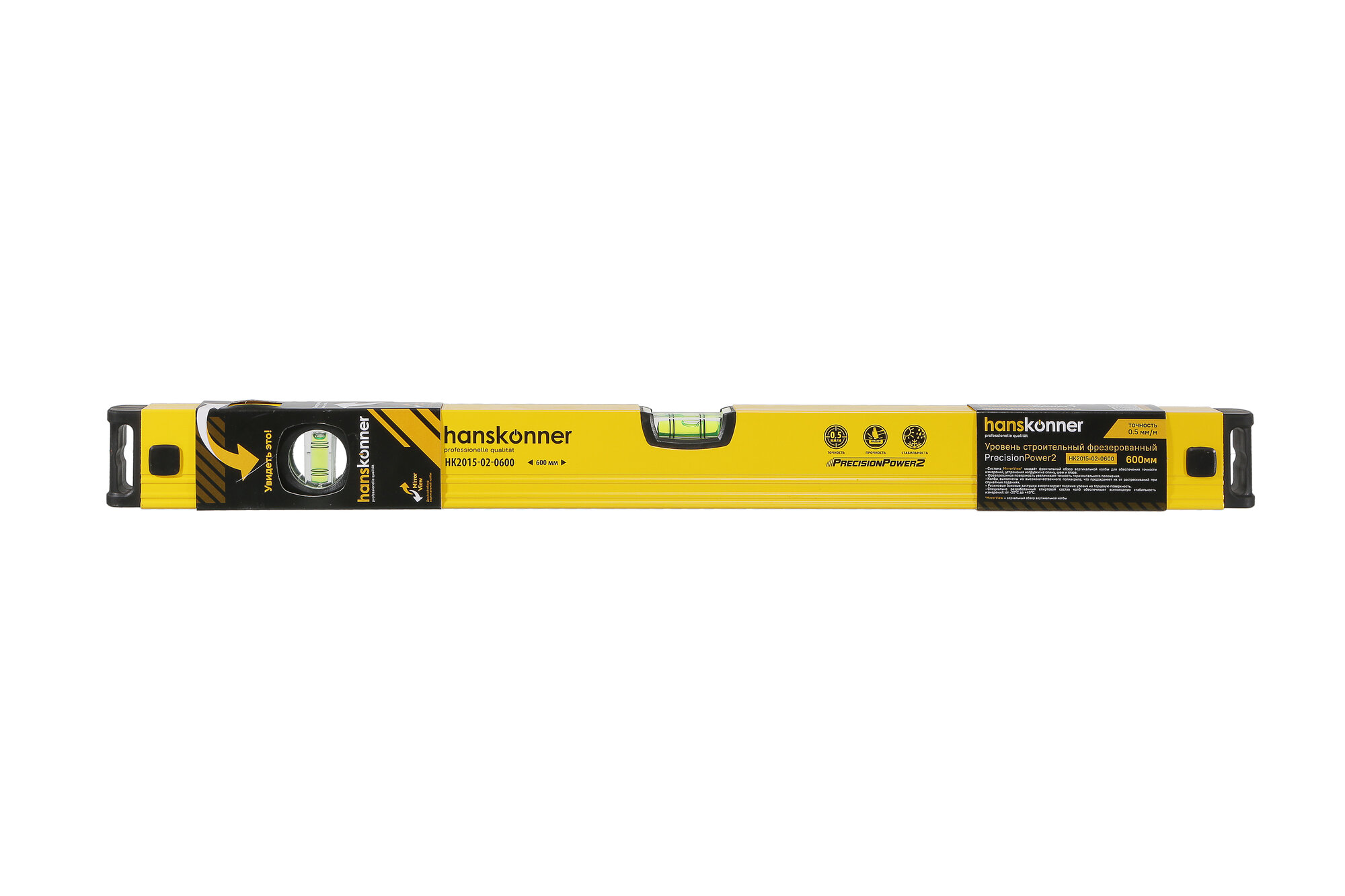 Купить Уровень Hanskonner HK2015-02-0600 алюм.600мм, 3 колбы, усилен, фрезеров, двойной обзор, 0,5мм/м