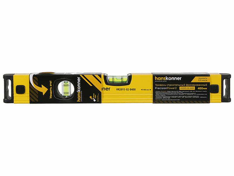 Купить Уровень фрезерованный Hanskonner HK2015-02-0400 400 мм, 3 колбы, усилен фрезеровкой, двойной обзор 05 мм/м