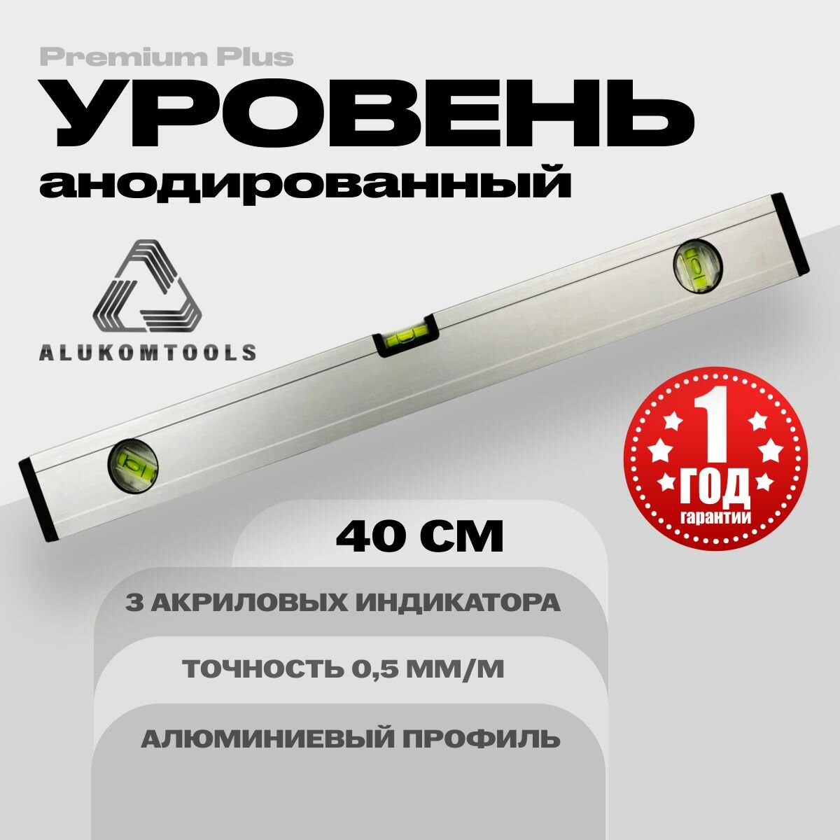 Уровень строительный анодированный пузырьковый, 40 см, алюминиевый, PREMIUM PLUS ALUKOMTOOLS интересное: