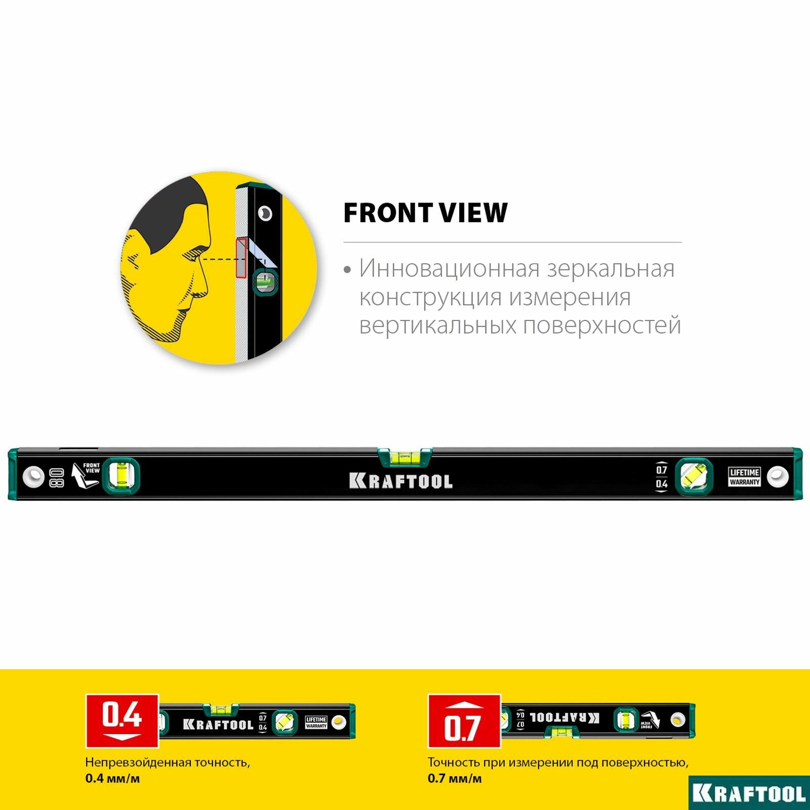 Уровень KRAFTOOL 400 мм, с зеркальным глазком GRAND