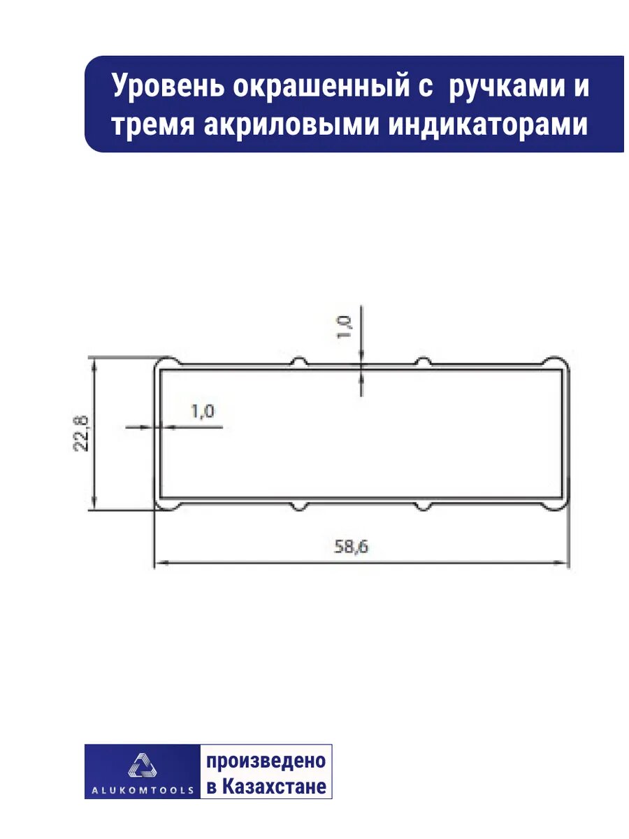 Уровень окрашенный с ручками и 3 индикаторами Alukomtools 60 см, красный ,100% алюминий