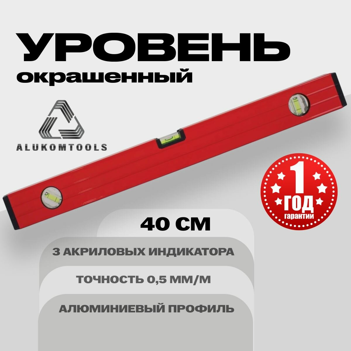 Уровень строительный окрашенный пузырьковый, 40 см, алюминиевый, ALUKOMTOOLS интересное: