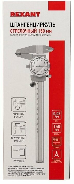 Купить Стрелочный высокоточный штангенциркуль REXANT для измерения размеров и глубин, 150 мм