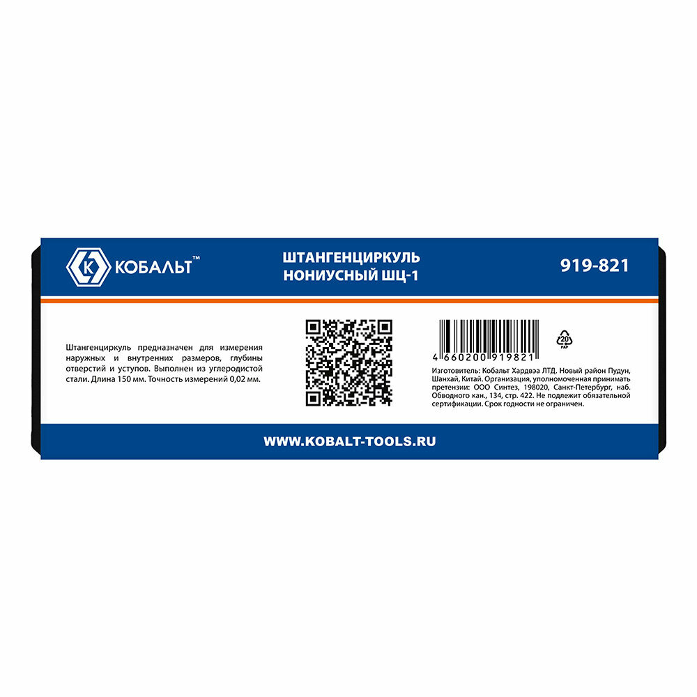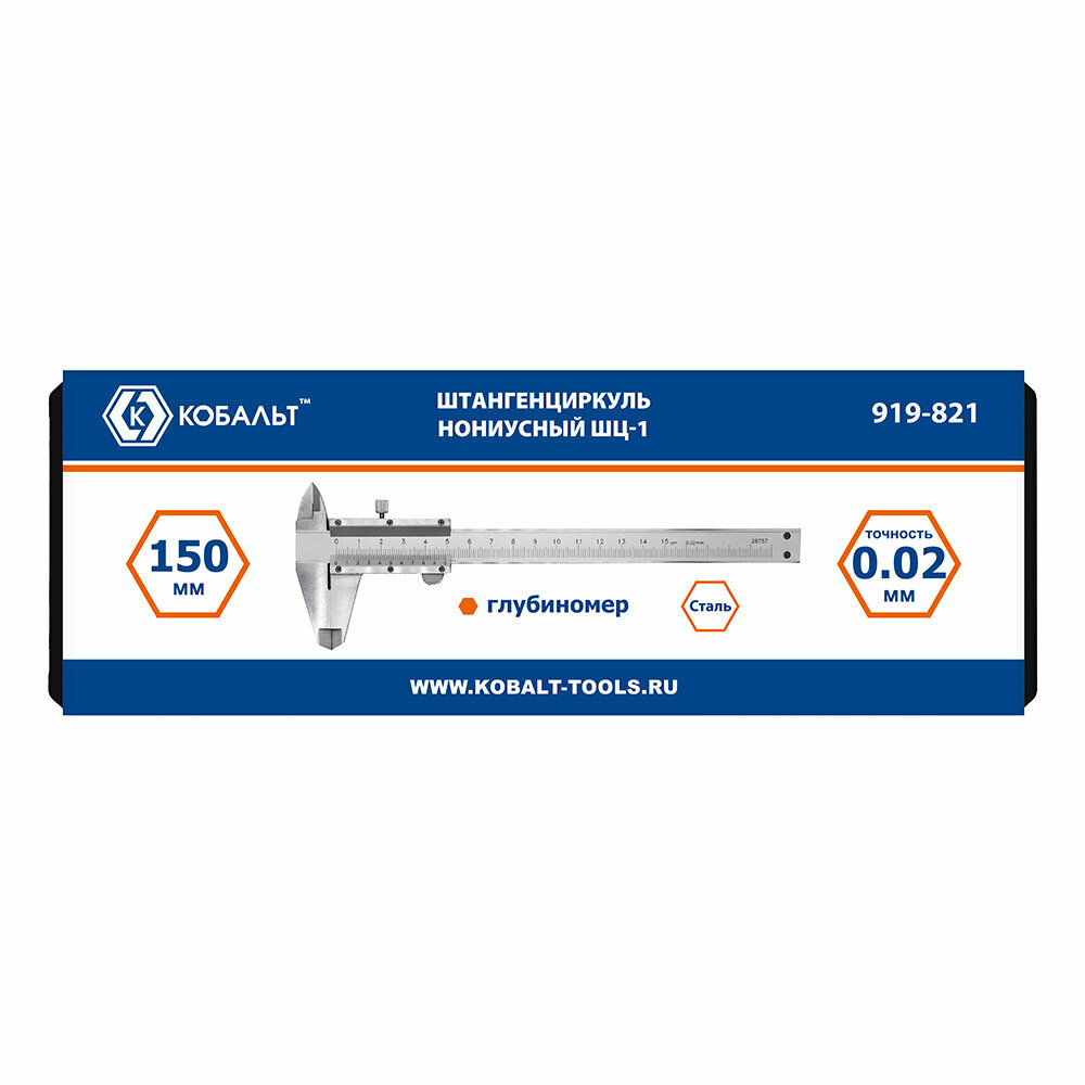 Штангенциркуль Кобальт ШЦ-1, открытый тип, 150 мм, точность 0.02мм, глубиномер, кейс интересное: