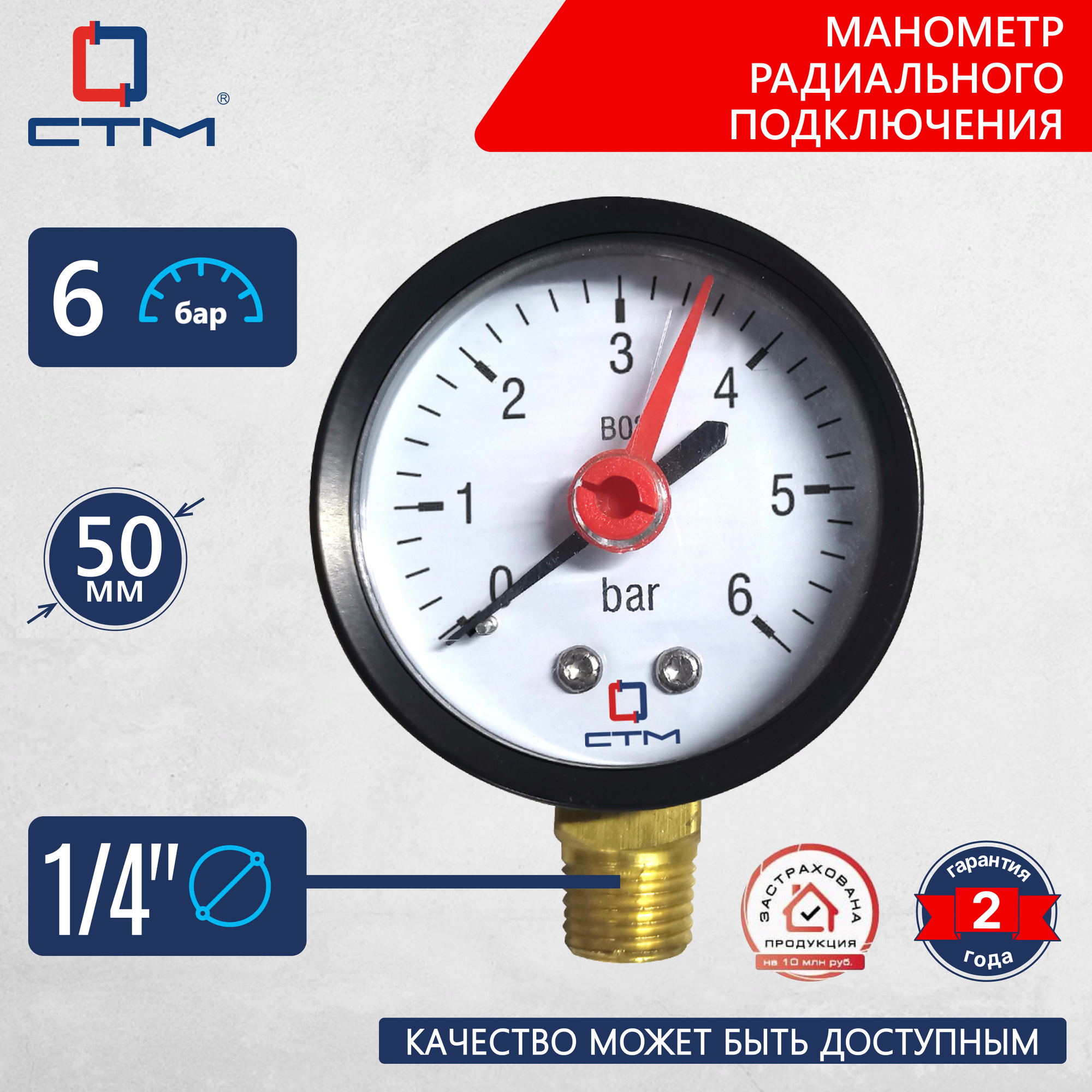 Манометр радиального подключения 1/4", измерение до 6 бар СТМ интересное: